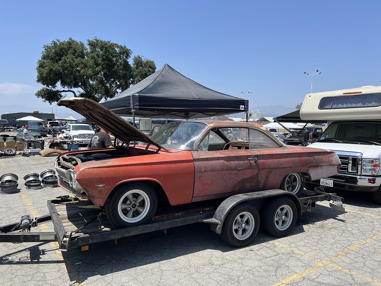 Nowadays, the swap meet features later model offerings, such as this 1962 Chevy “bubbletop” with a 409-powered Bel Air.