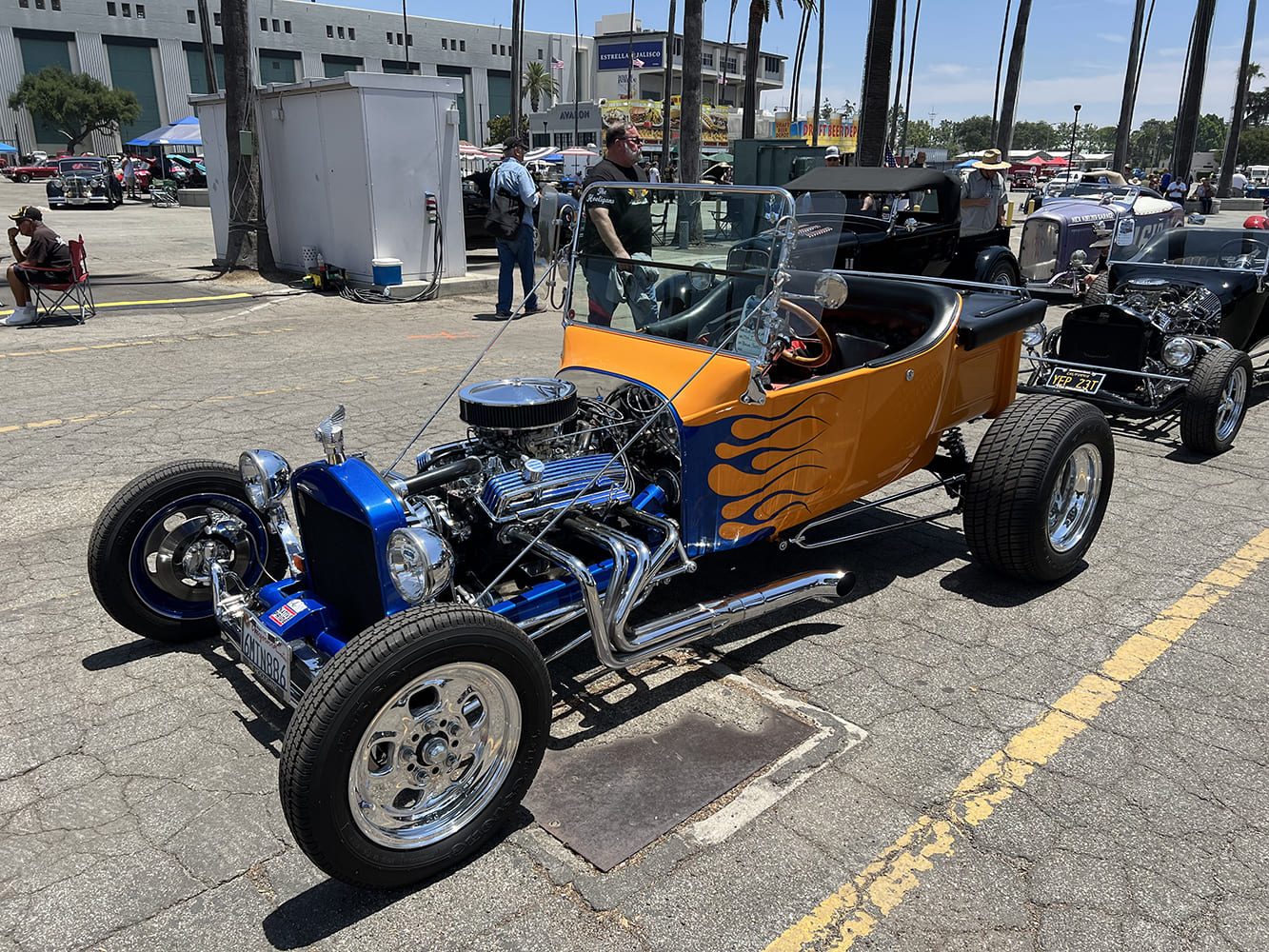 Bob Salazar of Buena Park, CA, was on hand with his T-bucket, a 1922 roadster pickup loaded with a chrome accessorized small-block Chevy.