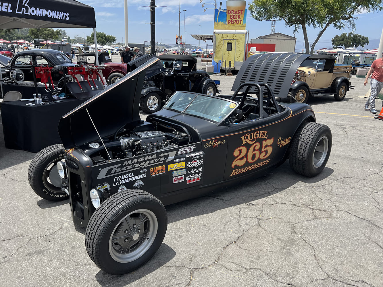 The “Kugels” are synonymous with the roadster show, street rodding, and land speed racing. Jerry and sons Joe and Jeff were on hand while Mom Judy and sister Jerilyn; all have been longtime contributors to the show, as well as Kugel Komponents and, of course, racing. This Muroc roadster limited edition, built by Kugel Komponents, is a family driven affair, powered by a MagnaCharger-equipped LS, reaching 223.425 mph at Bonneville back in 2009. We have read that Jerry has driven the car to 225.000 mph.