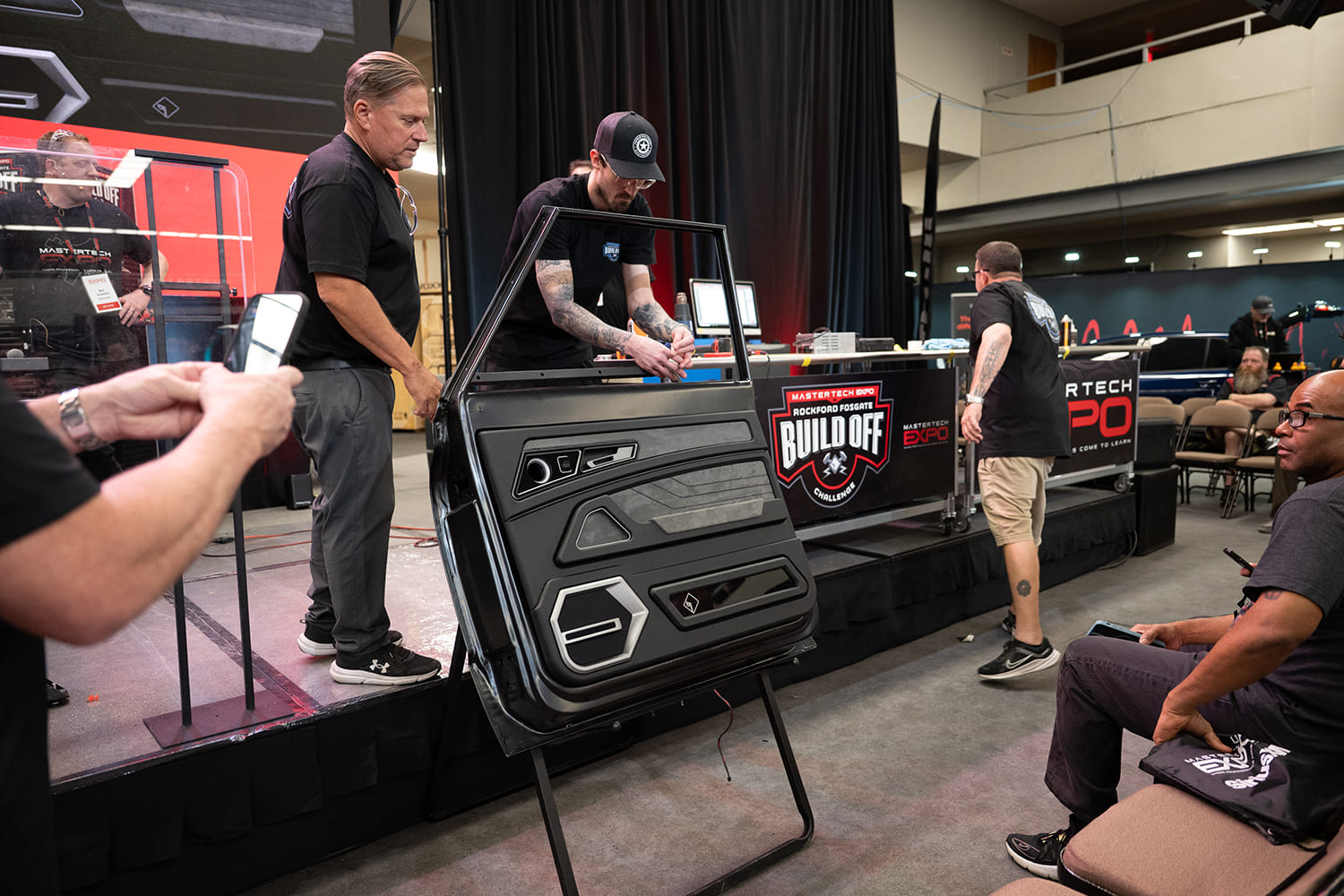 No MasterTech Expo would be complete without the adrenaline-pumping CleanWire Challenge and Build-Off Competition. In the CleanWire Challenge, four teams each day go head-to-head to wire up a complete amp rack in just 3-1/2 hours. Meanwhile, the Build-Off brings a Hell’s Kitchen vibe to the main stage as two teams race against the clock to craft a custom C10 door panel—live, in front of the crowd, also in just 3-1/2 hours. These high-energy showdowns ignite the exhibit floor with excitement, showcasing real-time creativity, precision, and teamwork. Capping it all off was a compelling live interview with automotive icon Dave Kindig, a true trailblazer who’s been redefining custom car culture for decades.