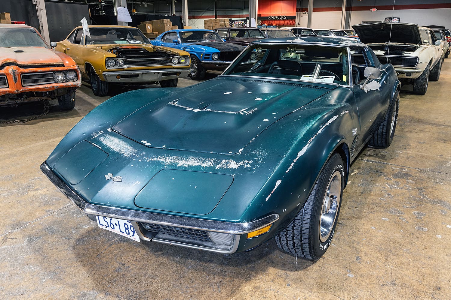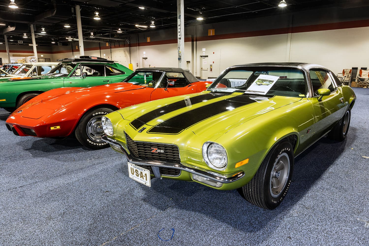 Owned by John Milota, this 1970 Camaro Z28 was waiting to go for its Vintage Certification. This car is an incredible time capsule with only 3,038 miles on the odometer from new. The 1975 Corvette, also going for its Vintage Certification has just 9,077 miles logged and has been the recipient of a Top Flight Award, Bloomington Survivor Award, and a Bloomington Silver Certification.