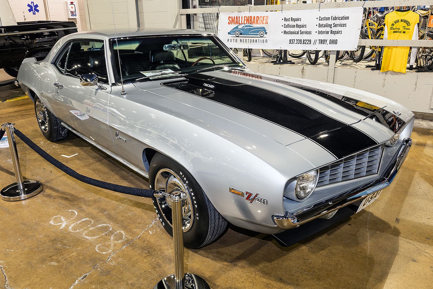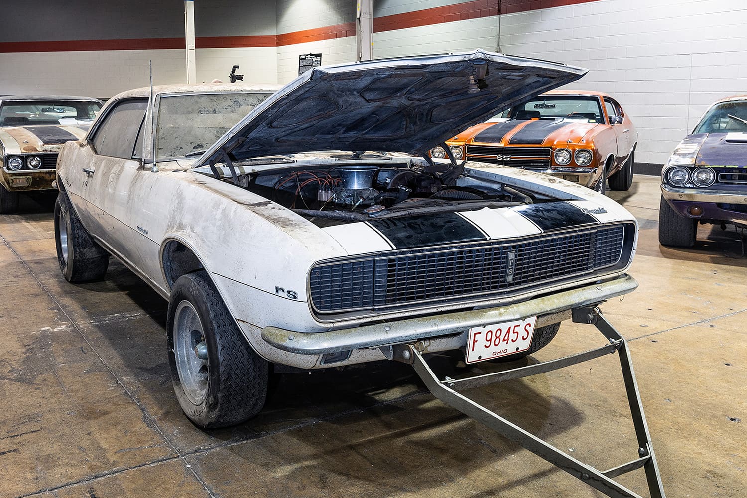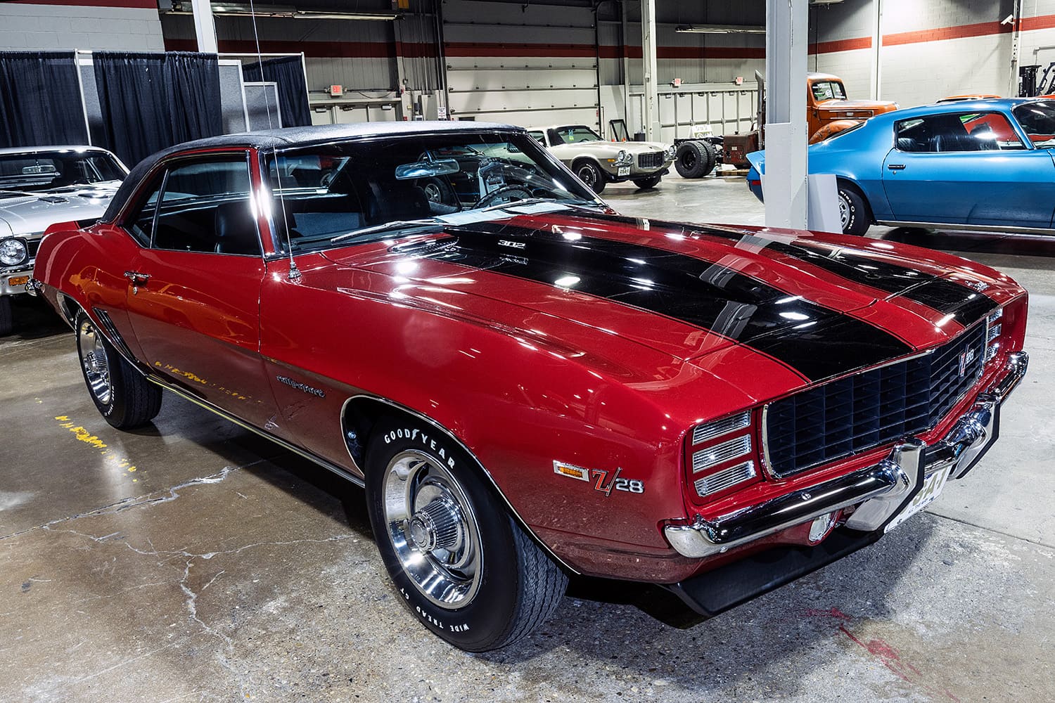 Taking center stage as folks walked in, this freshly restored 1967 Camaro Z/28 is credited as being Fred Gibbs first race car. As delivered in 1967 it was placed into the dealership’s inventory as a “Demo 302 Camaro Racer.” Named “Little Hoss,” it was campaigned with a 302ci small-block by Herb Fox, a salesman at Gibb’s dealership. It was the embodiment of the philosophy of “Win on Sunday, Sell on Monday” to drive traffic to their dealership in La Harpe, Illinois. This recent restoration takes the car back to its original 1967 Royal Plum metallic paint scheme and lettering.