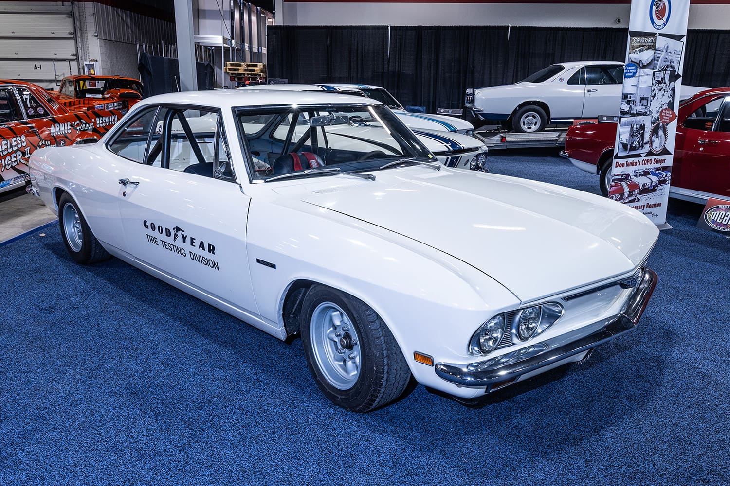 Mixed in with the various Yenko Corvairs was this 1969 COPO Yenko Stinger Corvair. This car was ordered with the 240hp Stage IV engine capable of reaching and maintaining speeds in excess of 140 mph. The car was ordered by the Goodyear tire company for testing 13-inch tires for Ford of Australia because neither Ford nor GM had a suitable car for that task.