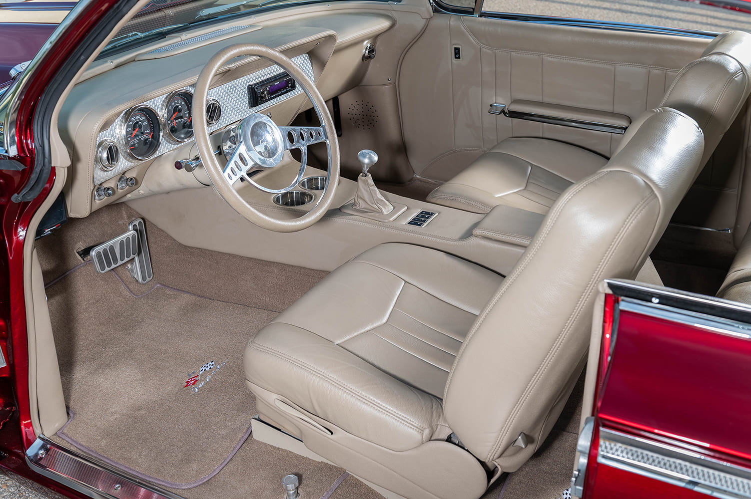 13 1962 Chevy Impala tan leather interior full console billet trim vintage modern blend