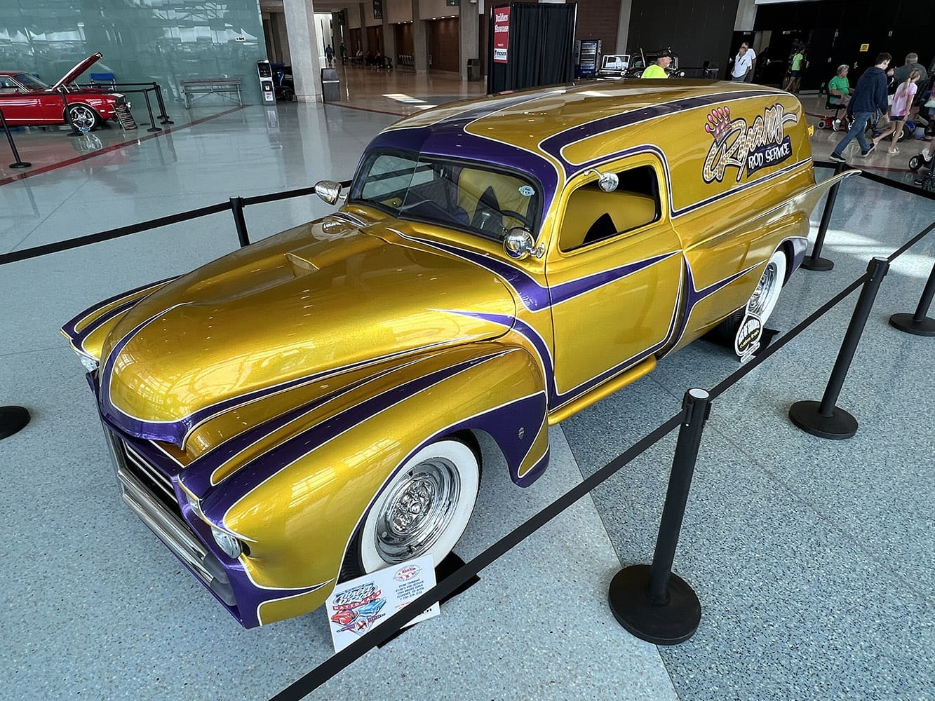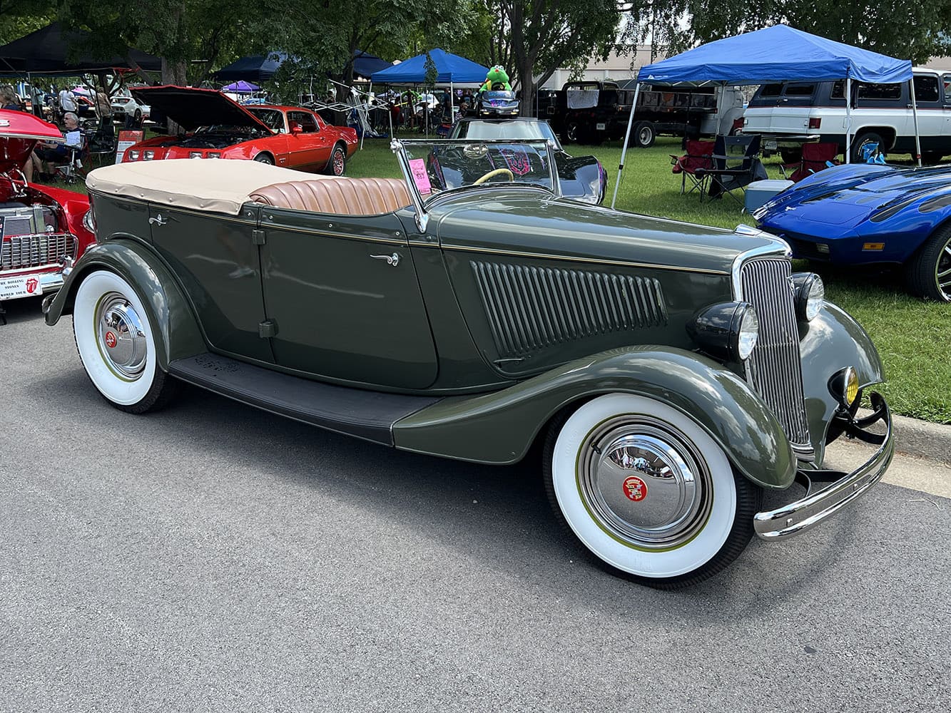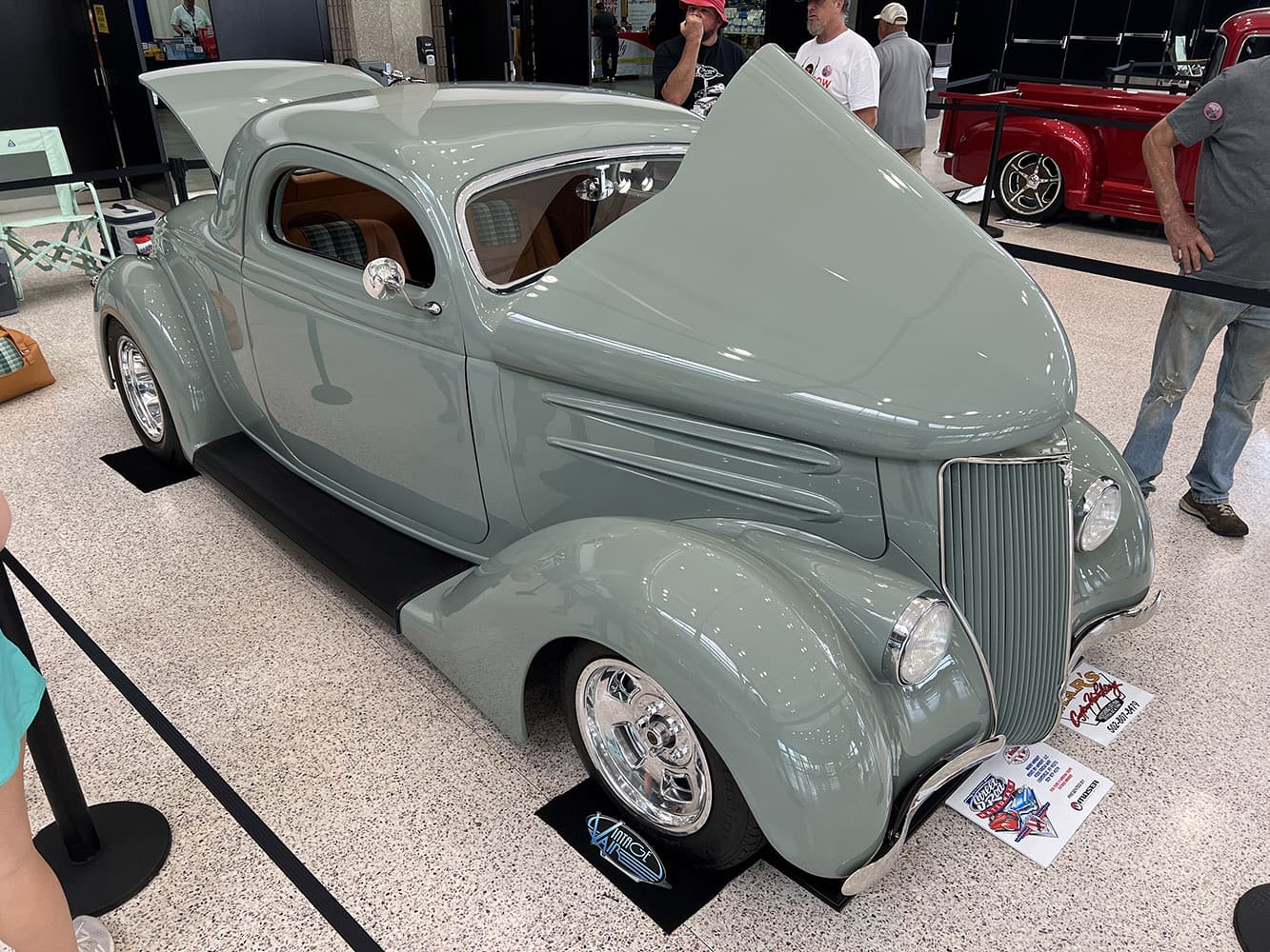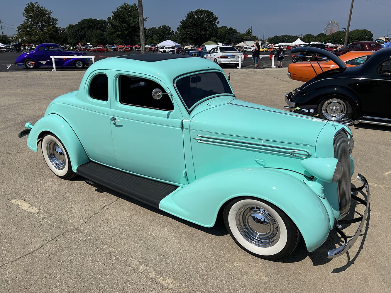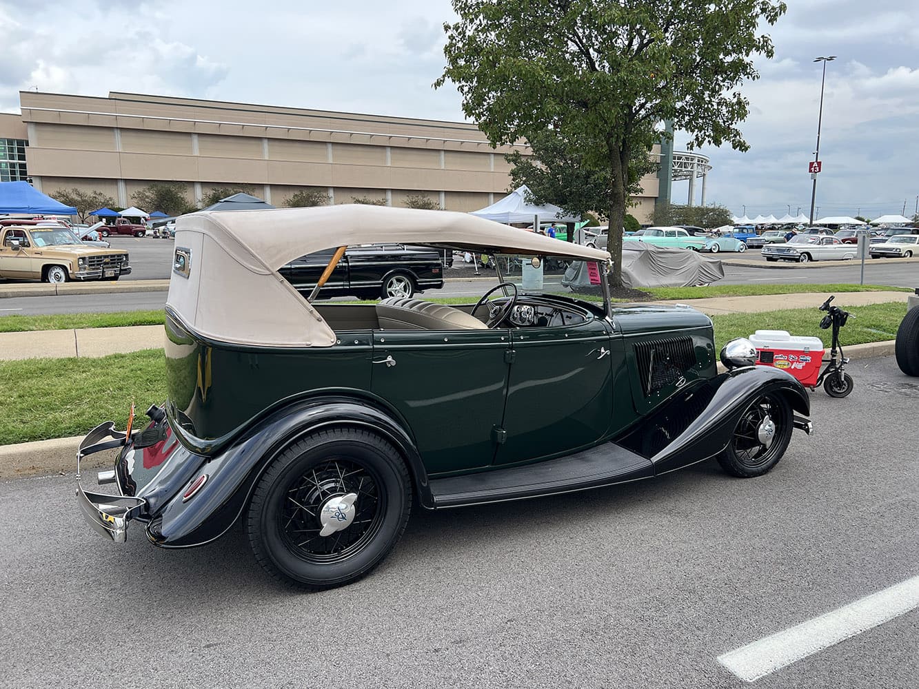 Dave Stockton of Yellow Springs, OH, had his mild custom 1934 Ford phaeton, complete with wide whites and Caddy hubcaps, on display in front of Freedom Hall.