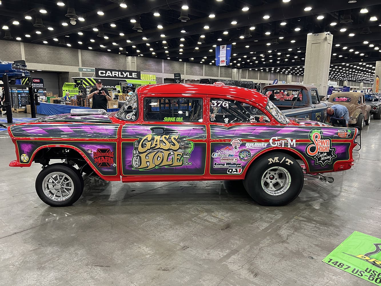 Inside, there was a collection of gassers from the Straight Axle Mafia (based in Louisville and dedicated to vintage gassers) that was a must-see stop for hot rodders cruising the aisles, like this mid-’50s Ford wagon and 1955 Chevy post car.