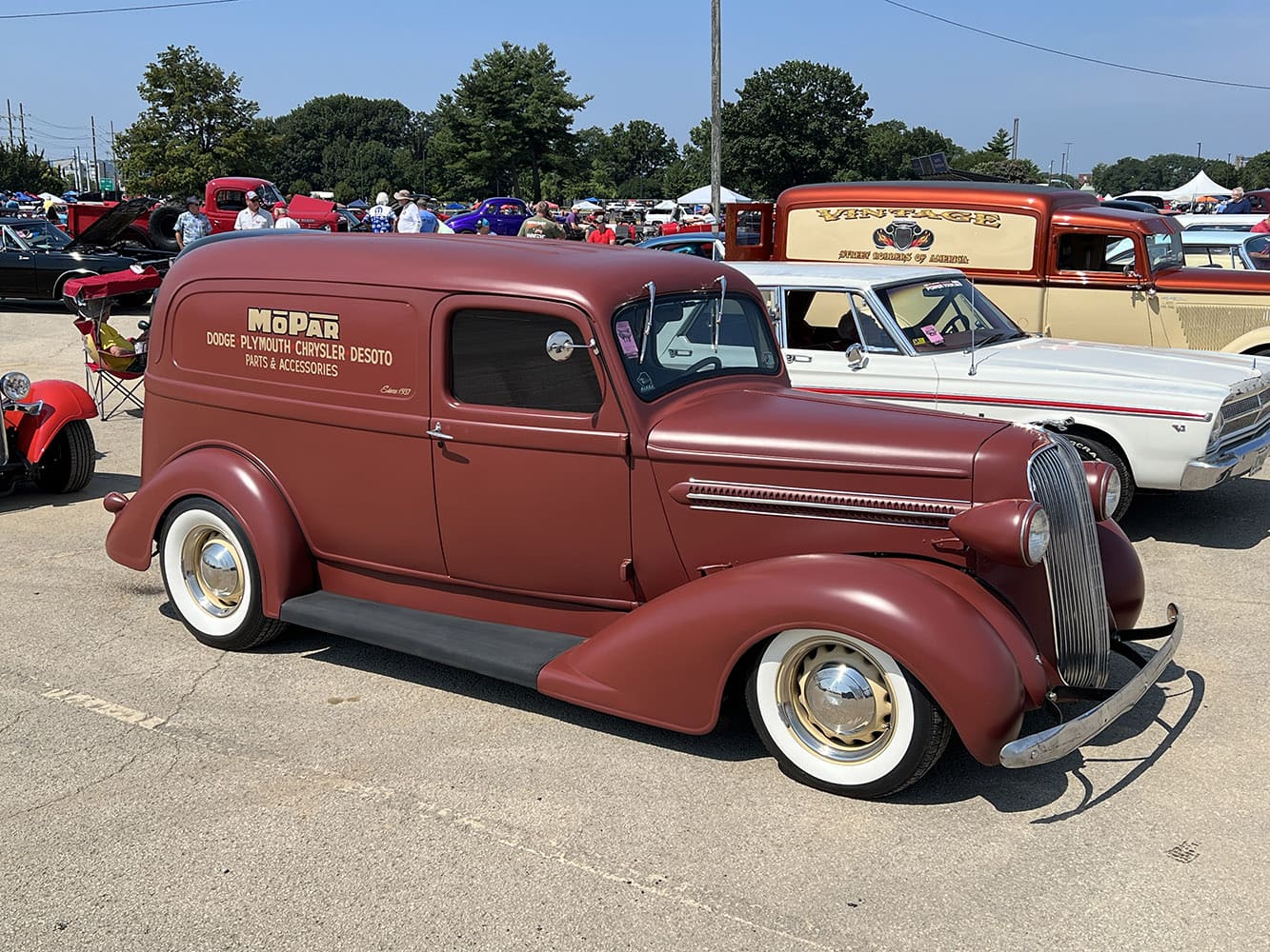 In Mopar Country, we found this very cool-looking primered 1937 Plymouth panel truck belonging to Larry and Bev Stroble of Carlyle, IL.