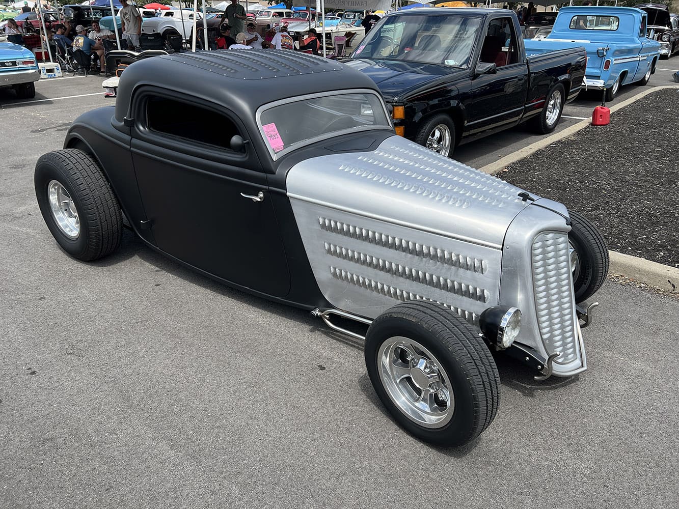 Our candidate for “Best Louvers” goes to Tony Smoot of Woodbridge, VA, for his fenderless and “almost” fully primered 1933 Ford three-window coupe. Polished big-windshield mags help with the hot rod look. Note the grille shell opening—we did say lots of louvers!