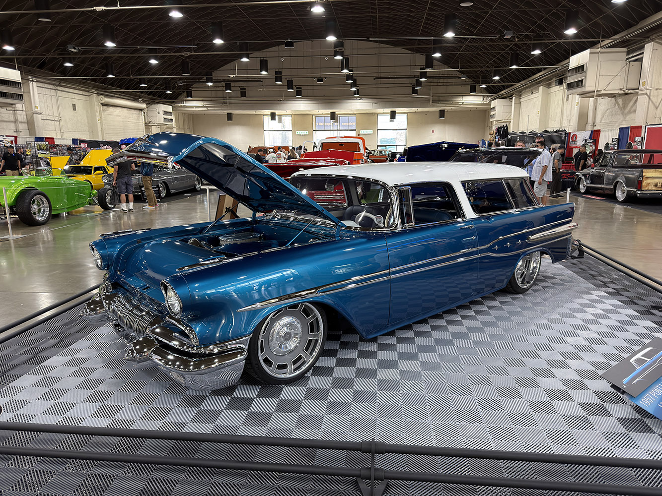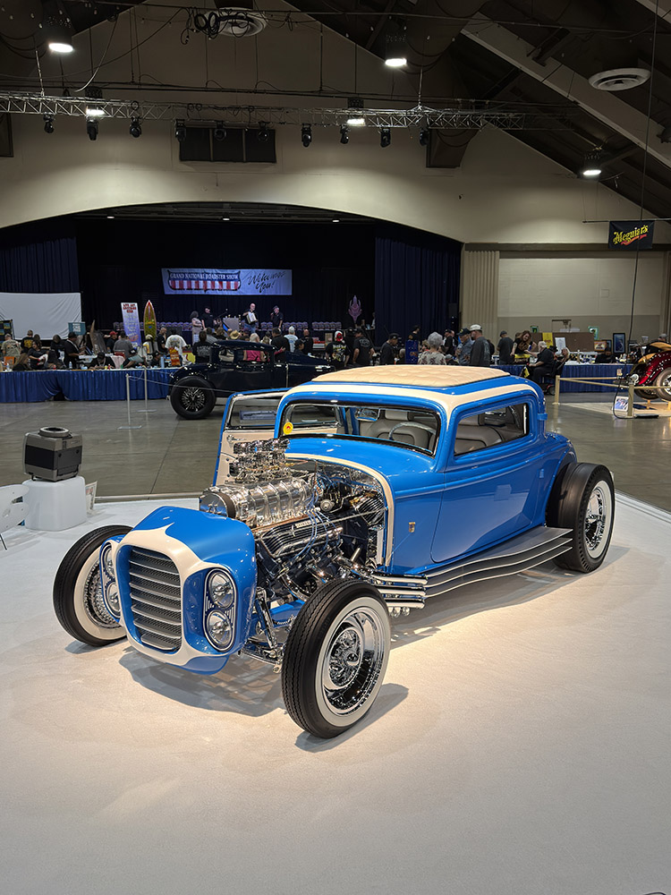 Building 4 also hosted the Builder of the Year honors. This year, Russell Zulim and the crew from Double Z Hot Rods received the award. Nearby was the restored Silver Sapphire, a 1932 Ford three-window coupe—the same car that once appeared on the Beach Boys’ “Little Deuce Coupe” album cover. Now owned and restored by Curt Catallo, son of Clarence “Chili” Catallo, the original builder, the car was on display and was a favorite among attendees. (Check out our video: https://bit.ly/3MLFuoj.) (More on this iconic hot rod will be featured in upcoming issues of Modern Rodding.)