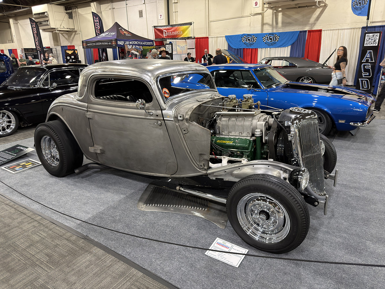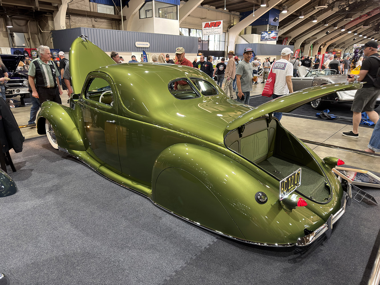 Off to Building 6 to take in the sights and sounds, but also to take a long look at the cars and trucks competing for the Al Slonaker Memorial Award. The “Slonaker” is also supported by ARP, which offers a beautiful, one-of-a-kind silver cup and a $12,500 prize, all courtesy of ARP. (It’s through ARP’s generosity that both awards are kept alive and thriving.)
