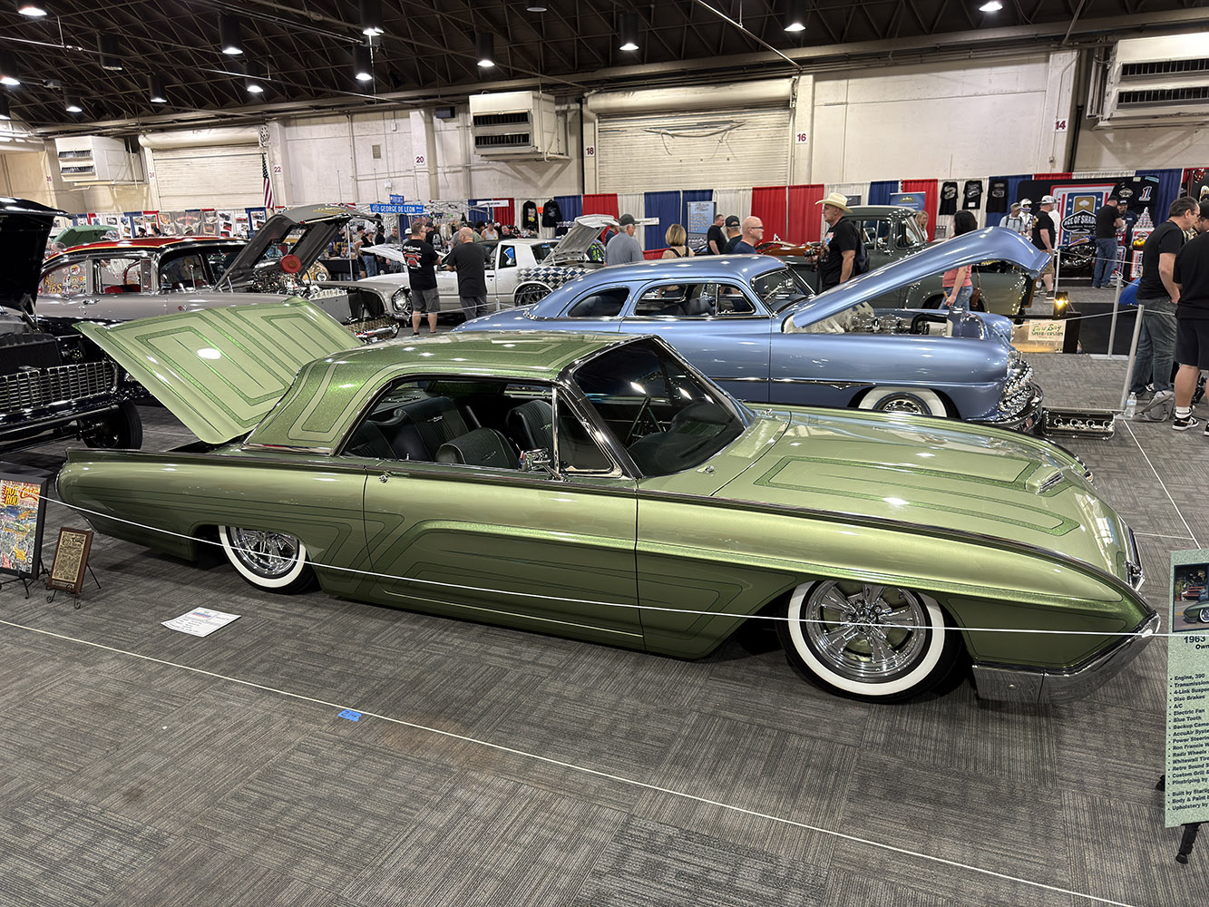Building 7 was open every day and featured a room filled with the best-looking hot rods, street machines, trucks, and muscle cars, all grouped together. This was followed by Building 8, where lowriders, custom boats, the West Coast Pro-Street Outlaws Club with 13 big-tire cars, and custom motorcycles were showcased. Building 9 was titled the “Fat Attack,” where a selection of Fat Fender cars from 1935-48 was displayed, including hot rods, customs, Gassers, and both race cars and lowriders.
