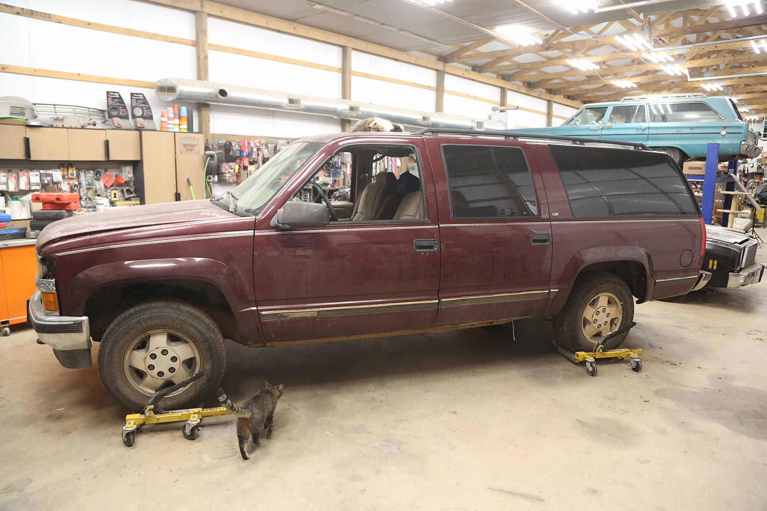 Our ’Burban started out as an LS-packaged 4WD unit with a 5.7l SBC and a 4L60E. We plan to swap in a Gen V LT-series 5.3 L83, keeping the 4L60E for now, freshen up the interior and exterior, and building a 2000s-era stereo system, complete with vintage equipment. This process begins inside the truck, stripping away the original carpet that has become threadbare. With a clean slate, we address the foundation by adding a healthy dose of sound deadening.