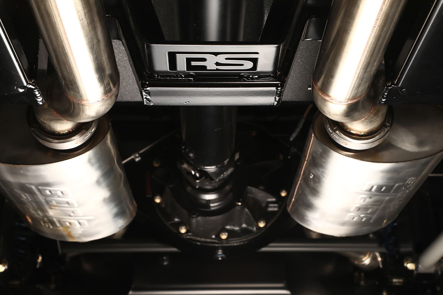 Rear Suspension: Roadster Shop four-link suspension system, Fox coilover shocks, Hyperco springs, Roadster shop control arms