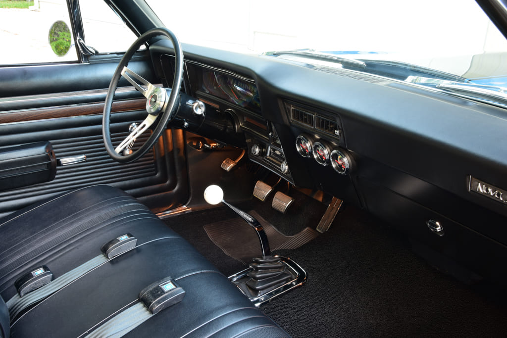 With the Nova having packed big-block power in the past, it was an easy decision to fill the framerails with another monster, however this time there was a special knockout punch waiting to be delivered: a limited production, Anniversary Edition ZL1 427ci big-block crate engine. Created from the original tooling and honoring the rich history of the legendary ZL1, it was a perfect opportunity to fuse a powerhouse into the build. Number 93 of 427 produced, it carries the ultimate in performance starting with an all-aluminum block cast from 356-T6M alloy featuring splayed, four-bolt mains and screw-in galley plugs. Forged steel crank and rods are matched to forged aluminum pistons getting a healthy bump from a hydraulic roller cam with aluminum roller rockers.