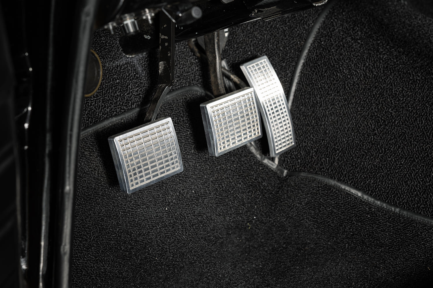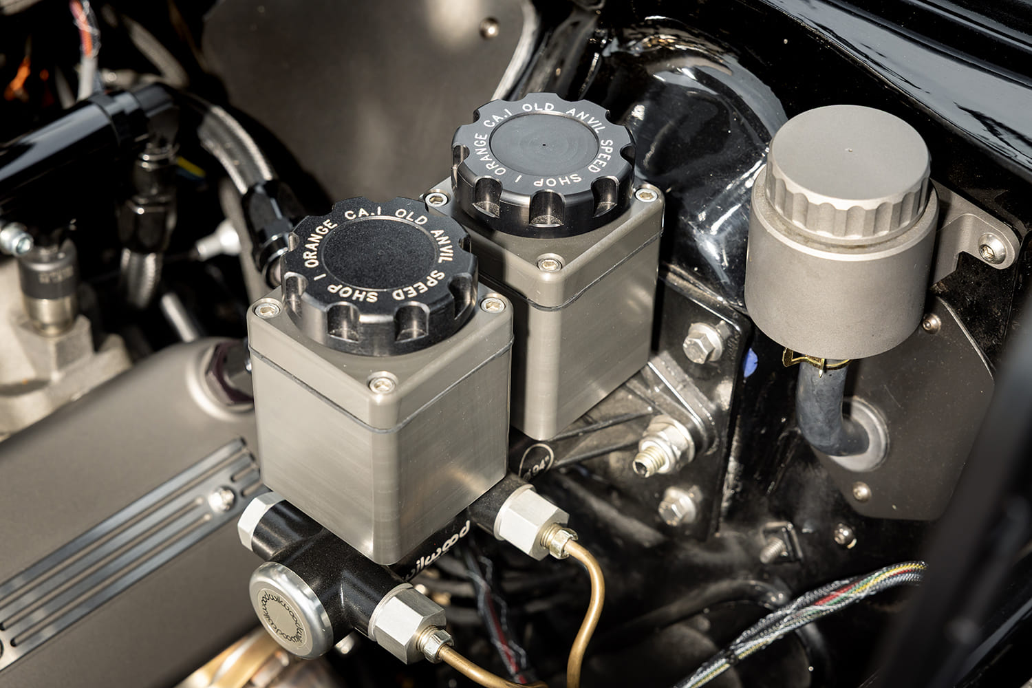 What started out as a quick visit for a simple hood modification and a couple of new parts turned into an intensive rebuild except for fresh paintwork. Paul and crew went through the entire suspension system, made a few tweaks, and added double-adjustable QA1 coilover shocks at each corner. A custom set of wheels was then constructed on Old Anvil’s in-house CNC machine, which are special one-off prototypes that should be available for sale at some point soon. Until then, you’ll just have to envy the ones on Chris’ car.
