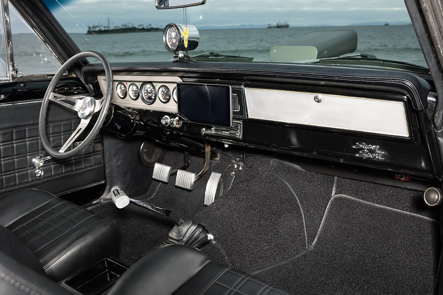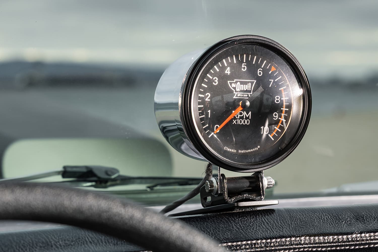 Watching the Nova getting tuned at KP Fab & Tune in Riverside, California, was one of Chris’ favorite experiences with the car so far. Before the Nova was let loose onto the Orange County streets, however, the interior had to be properly updated. Bosserman and company replaced the steering wheel and front buckets, reimagined the rear seating area, and installed Old Anvil’s own set of gauges to round out the list of signature touches that have been peppered throughout the build.