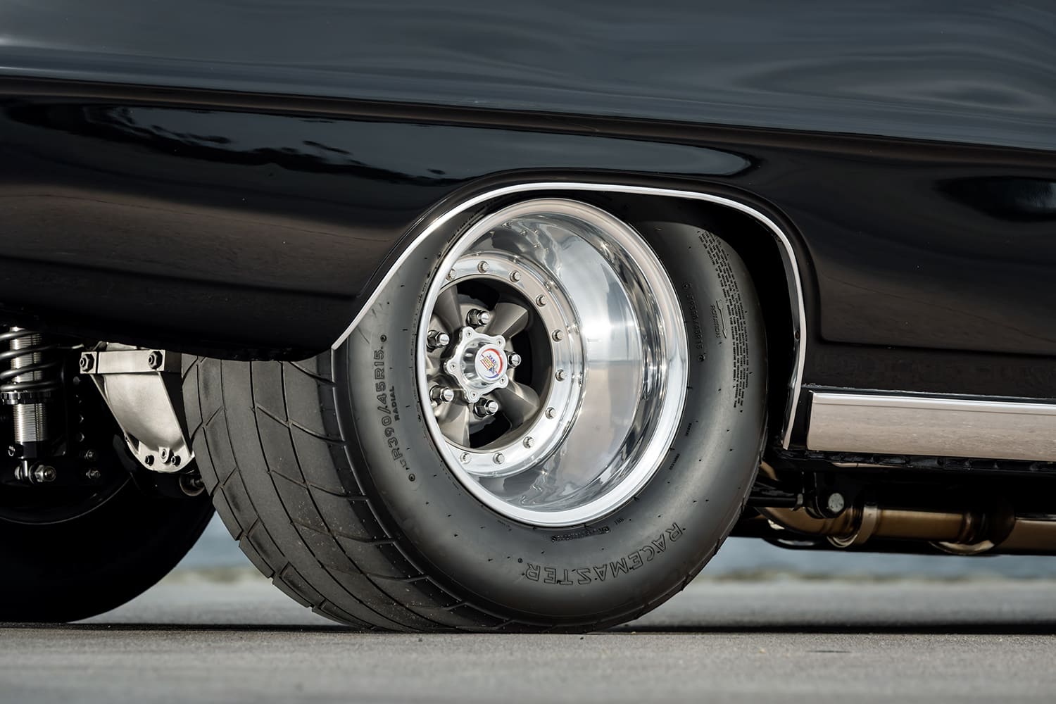 Tires: 26.0/4.5-15 M&H Racemaster front, 390/45R15 drag radial rear