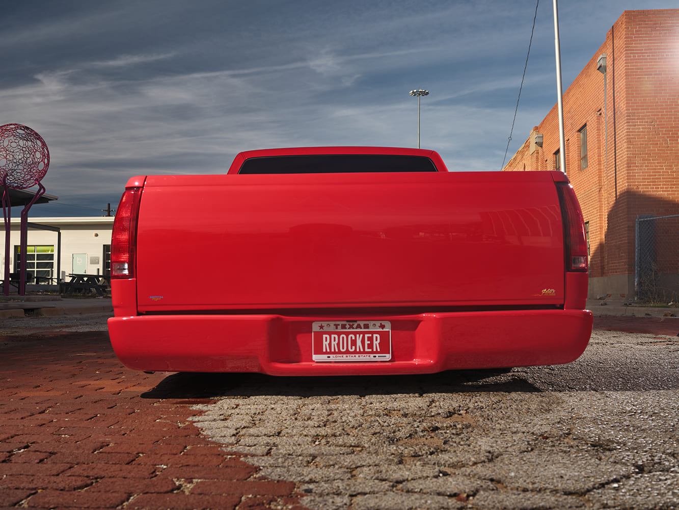 That rather famous truck Hill alluded to is none other than ex-Truckin’ feature editor Travis Noack’s 1985 Squarebody—done in 2004 back when I was editorially trying to convince the powers that were that first-gen Squarebody C10s belonged in Primedia’s sister publication Classic Trucks magazine (I was right, but would’ve built my Spanish Gold 1975 Cheyenne regardless!). Almost exactly 30 years later, Hill’s Hot Rods teamed up with JD Glassworks (also in Lubbock, Texas) for the four-wheeled rocker reunion, aka Sammy!