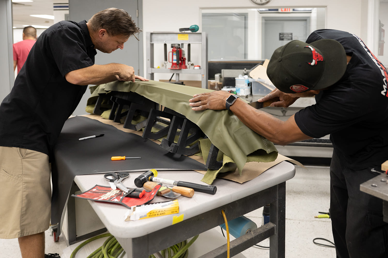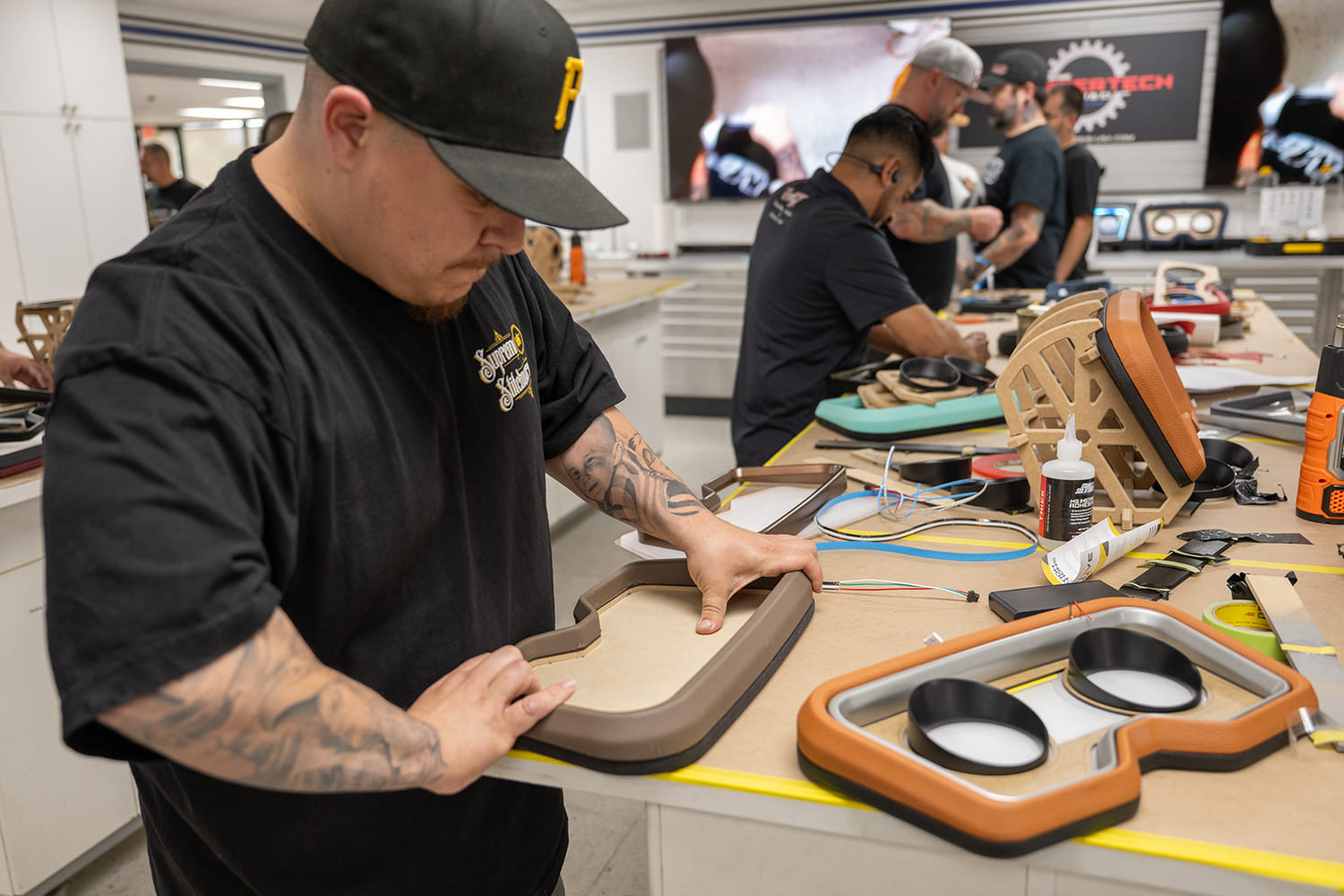 Monday was the final stretch. With tools in hand and upholstery materials laid out, attendees turned their attention to finish work. Techniques for stretching vinyl, hiding seams, and heat-forming around complex curves were demonstrated, then practiced. There was no pressure to complete every section—but there was encouragement to attempt something new.