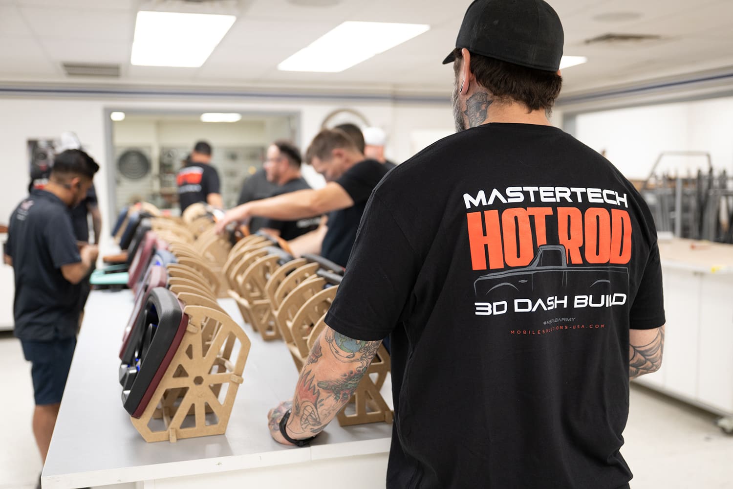 It’s 8:30 a.m. in Tempe, Arizona. The roll-up doors are open at Mobile Solutions’ fabrication training center, and the desert heat is already beginning to settle in. Inside, a fullsize C10 truck cab shell sits front and center, its bare metal dash a blank canvas. Around it, a group of fabricators from all over the country gather—some returning for their 10th class, others attending for the first time.