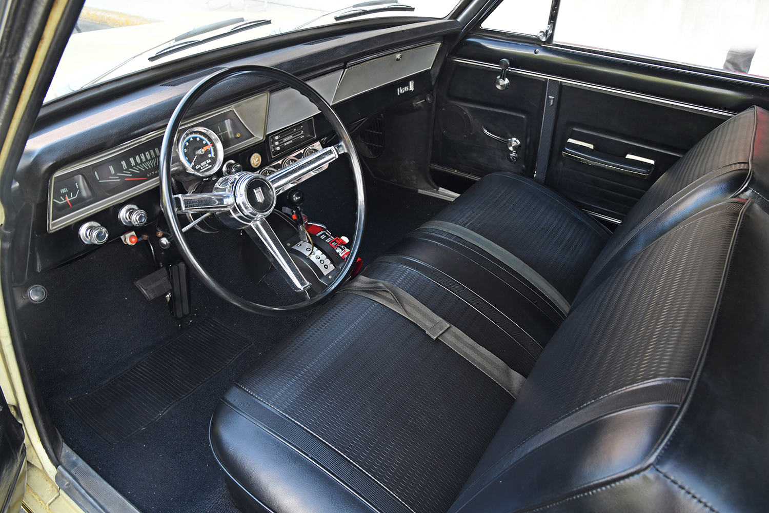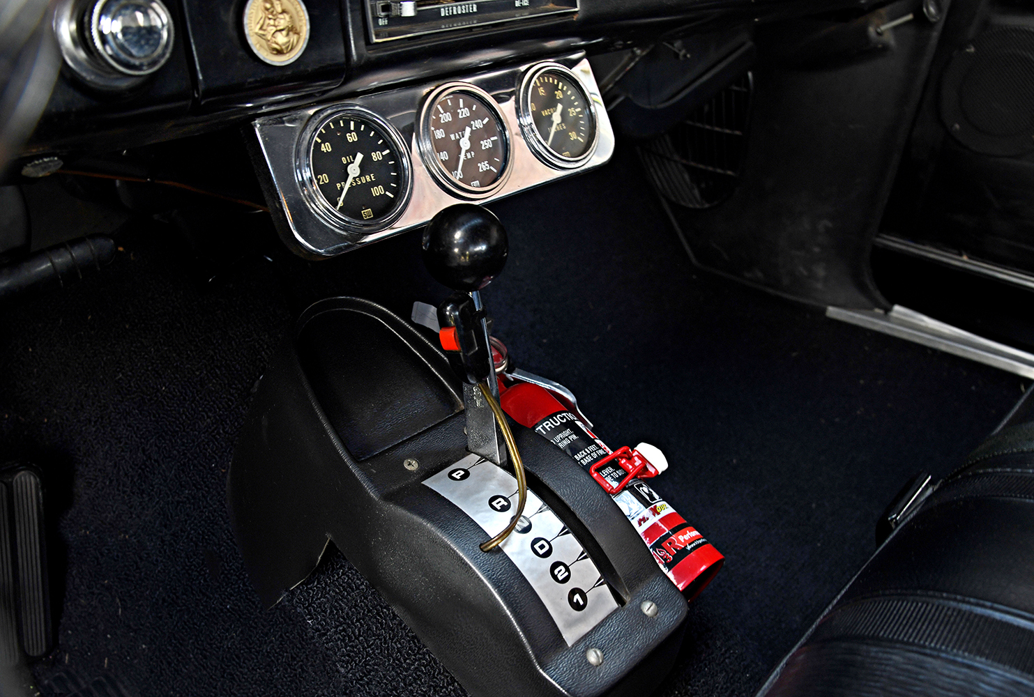012 1967 Chevrolet Nova SS interior showing center console additional gauges and a mounted fire extinguisher