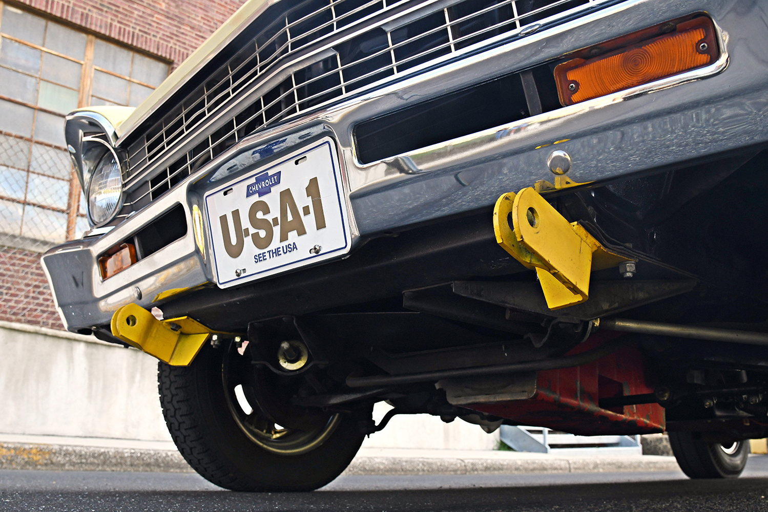 014 1967 Chevrolet Nova SS front end with yellow tow hooks USA 1 plate and detailed undercarriage restoration