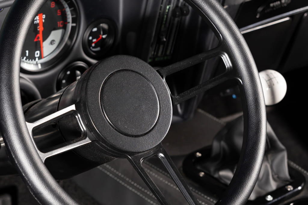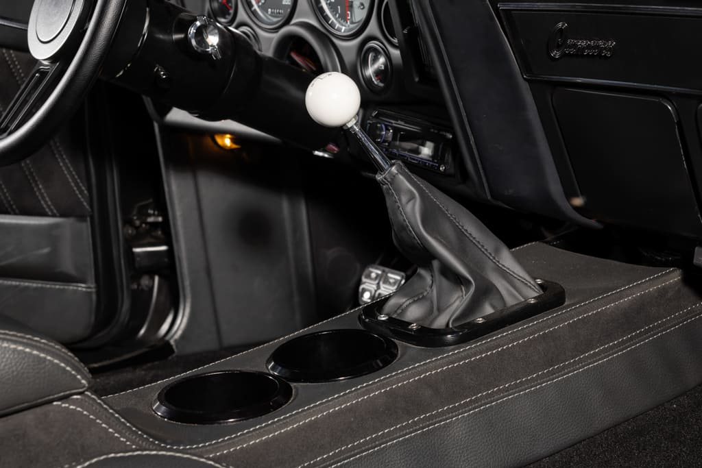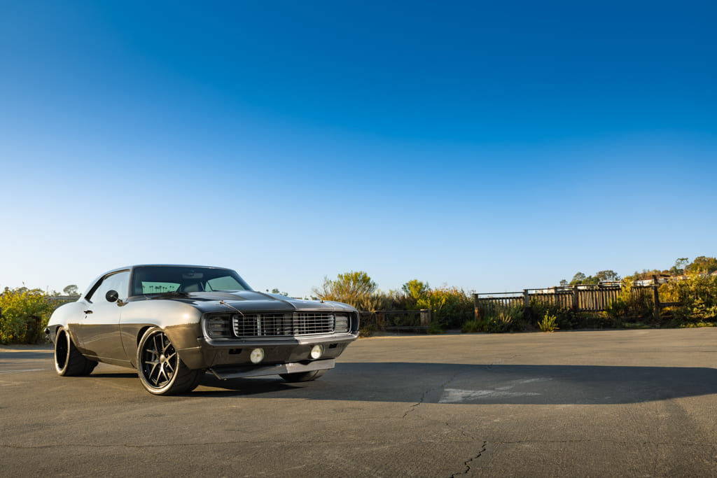 The interior of the Camaro was slated to be just as impressive as the rest of the car. To help set the pace for a sporty restyling, TMI Products was sourced to provide fully upholstered door panels and leather-covered racing bucket seats that have since been equipped with four-point harnesses. A custom center console was then fabricated and wrapped to match the rest of the textiles present. A leather-wrapped aluminum steering wheel, Classic Instruments gauges, and an Old Air Products heating and cooling system have been installed to provide next-level control and comfort. To up the ante with the list of top-shelf amenities featured on the Camaro, a killer sound system comprised of an Alpine head unit, Focal speakers and subwoofer, and Mosconi amplification elevates the car’s level of excitement.