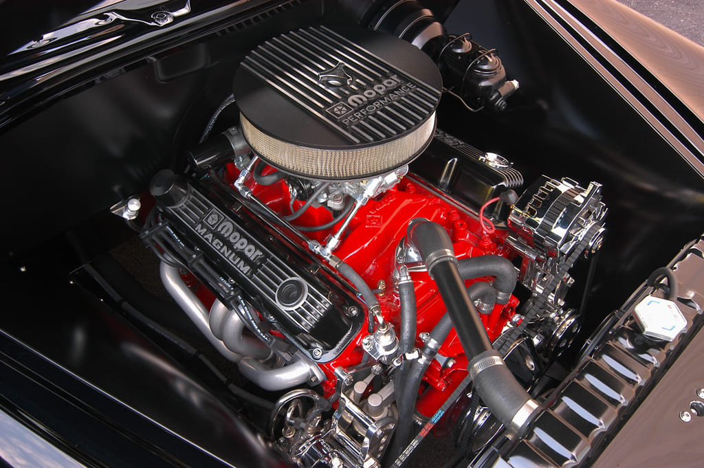 And that aforementioned makeover, which was completed back in 2005 (yes, nearly 20 years ago!), didn’t take a whole lot: Fatman IFS and a set of Posies’ parallel leaves under a new 9-inch rearend to get the desired stance and ride, while a Mopar 360 V-8 crate engine with a 727 TorqueFlite trans do their part to accommodate the rodding around properly.
