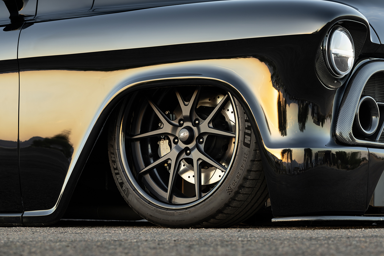 Just in case you were wondering, an original 1957 chassis was not used for this project. Instead, the Premier Street Rod crew opted for something much grander for the truck—a full custom chassis system from GSI Machine and Fabrication. This new frame offers the 3100 a fresh breath of life and has been properly adorned with Ridetech ’bags at both ends plumbed to dual ViAir compressors that are controlled by an AccuAir management package. Upgraded Wilwood braking kits have also taken up residence on the GSI chassis, as has a staggered set of 20×8.5 and 22×12 Billet Specialties Prism wheels and 235/45ZR20 and 325/35ZR22 Michelin Pilot Sport 4S high-performance rubber.