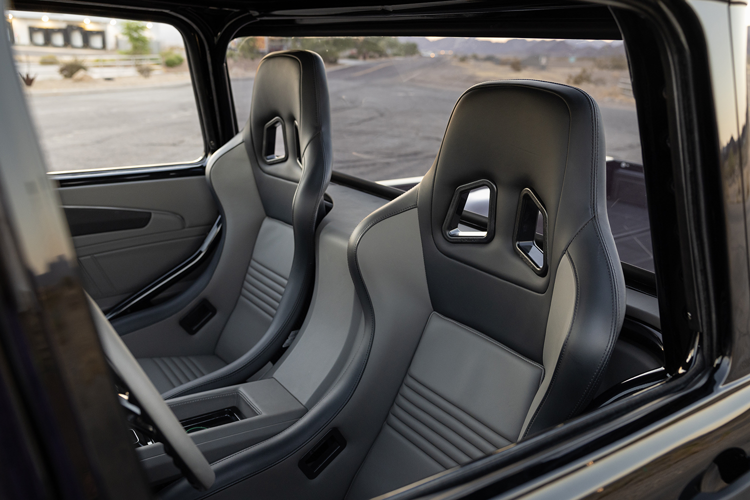 To further push the boundaries of the truck’s exterior, Jason Deering of Premier subtly massaged the metal surfaces of the body panels to give the truck a streamlined look. From there, the team decided on a combination of satin and gloss black PPG paint finishes to make for a truly dark and devious façade. It was this paint selection that largely contributed to the naming of this work in progress “Evil Twin.”