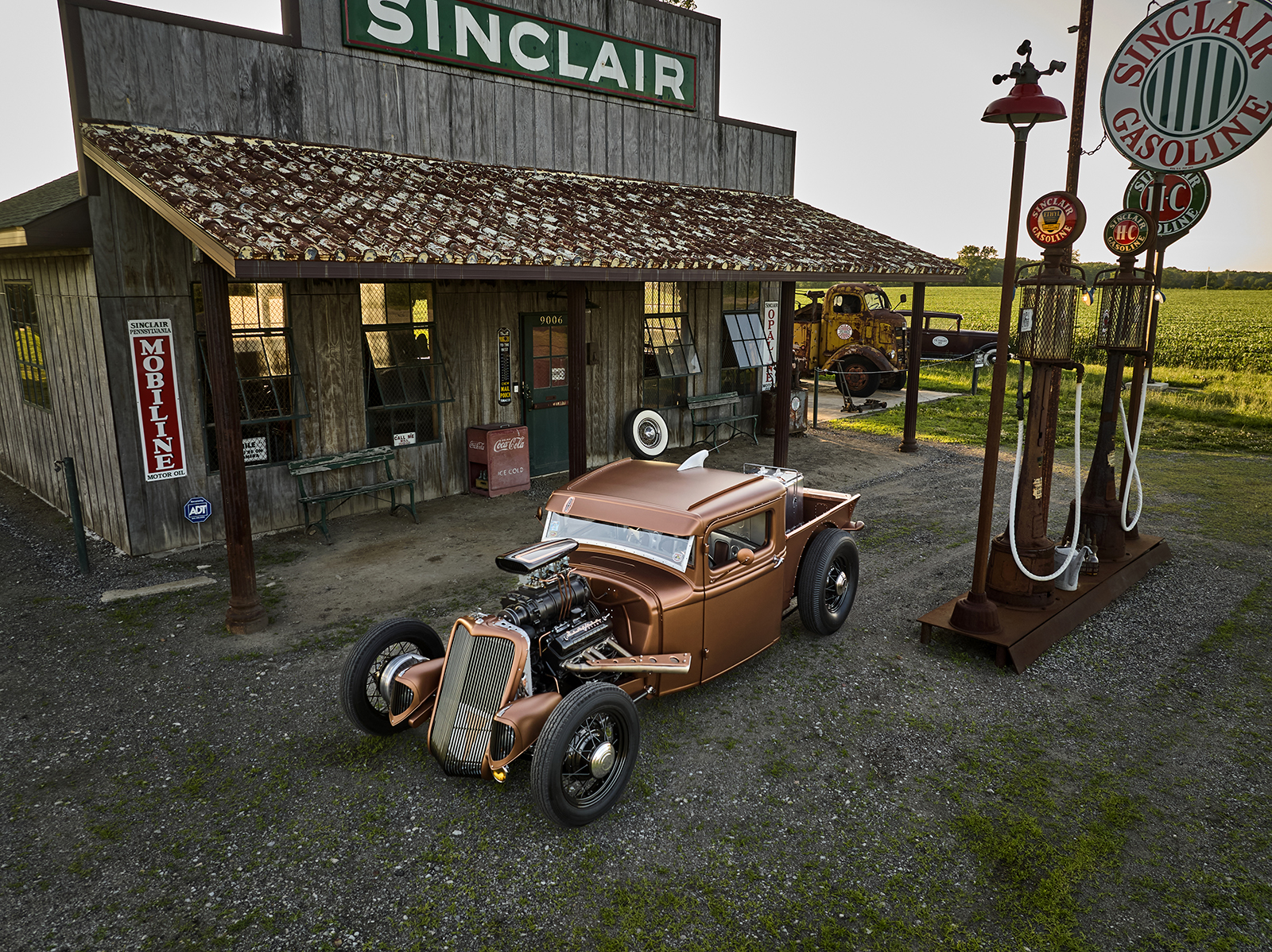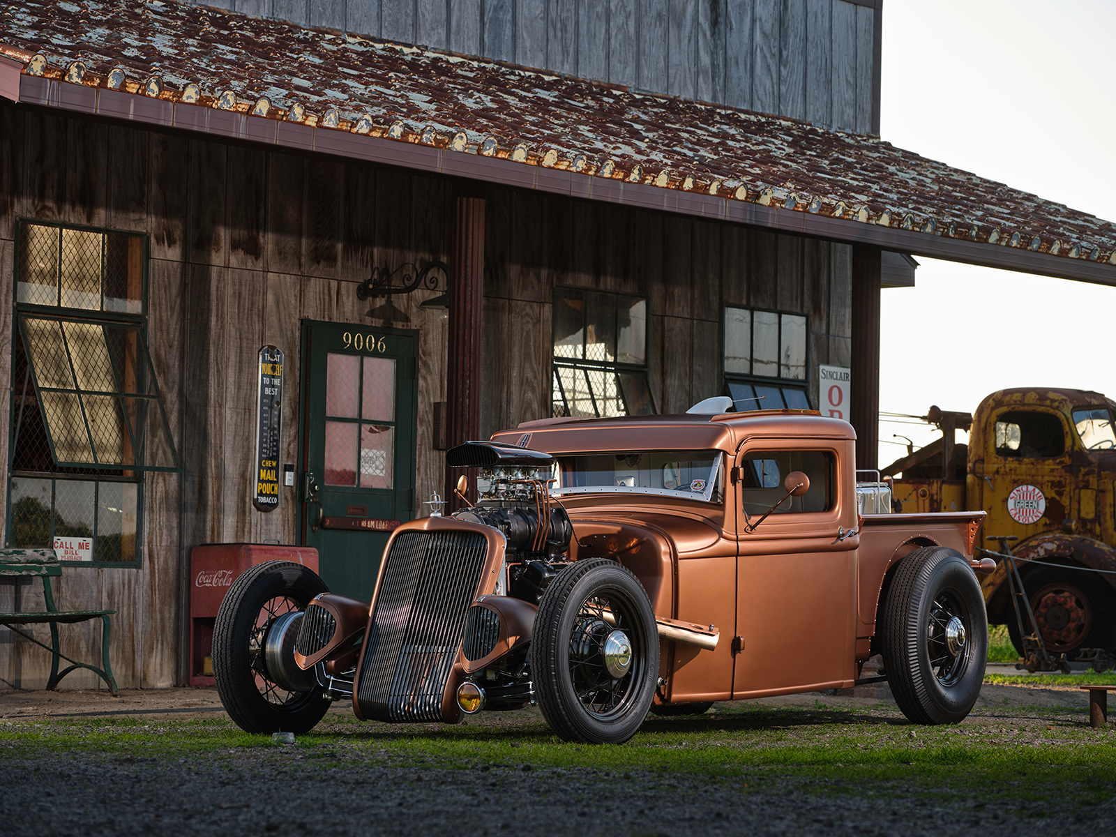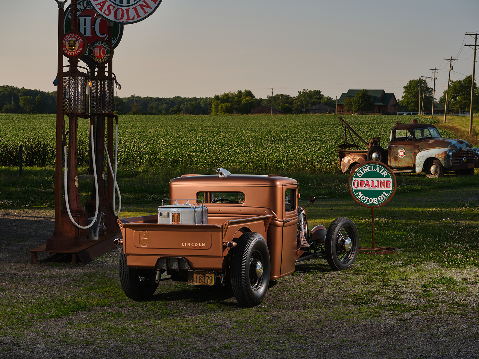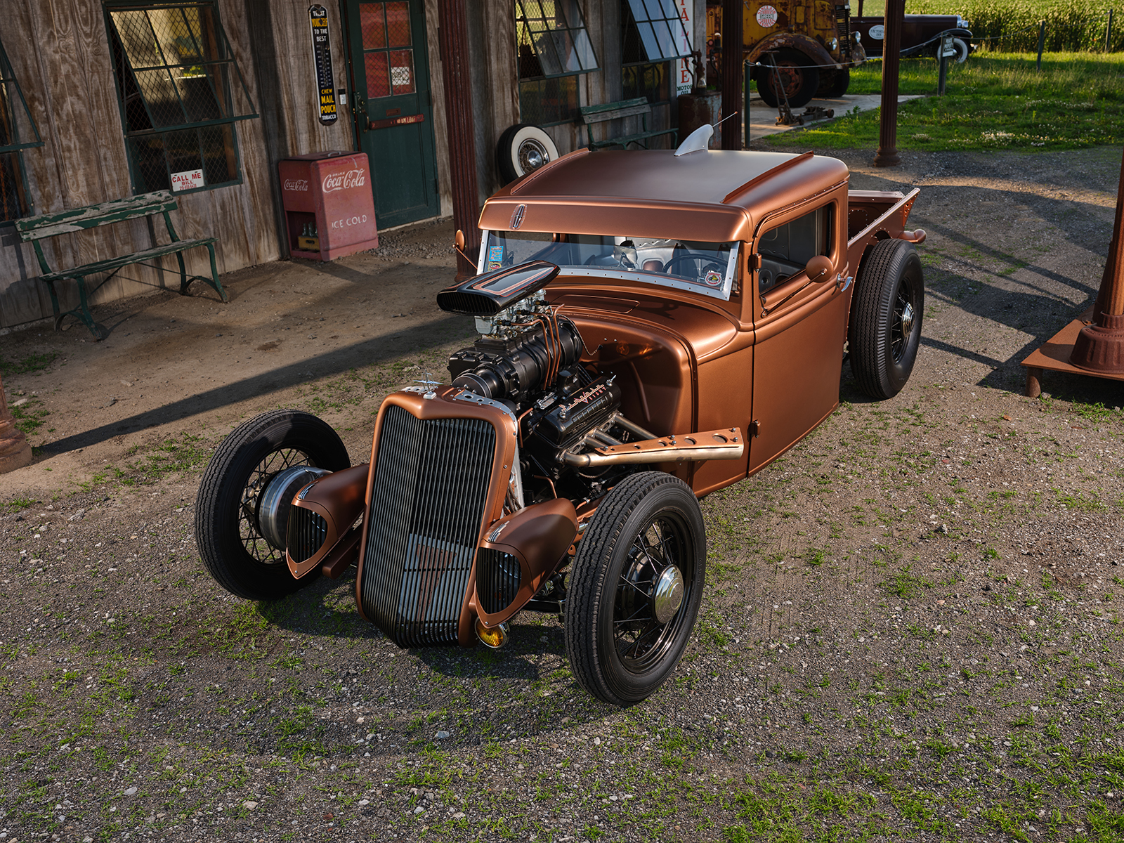 Bill Dinges’ 1934 Lincoln pickup, is craftsmanship in motion, with talented metal work, a chopped top, channeled body, and roots blower.