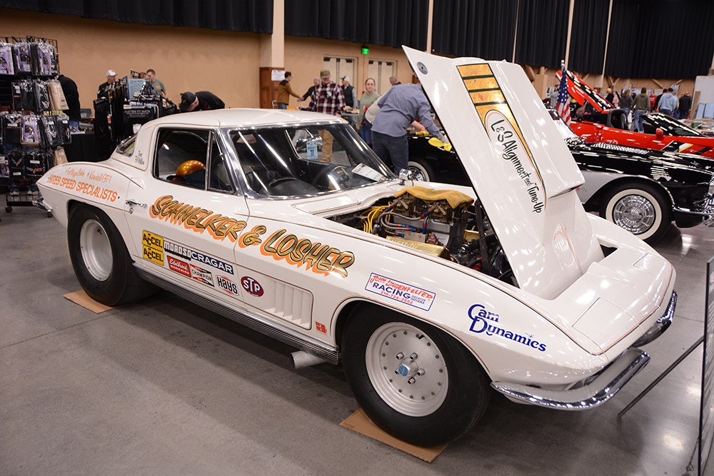 One of the wildest customs on hand was Jim Bryant’s final build, a car that combines a highly modified C1 body with C7 underpinnings. If that name sounds familiar, Bryant was the man behind the Soff Seal ’57 Chevy Pro Mod, driven by Rob Vandergriff in the ’80s and ’90s. Bryant and Vandergriff remained friends for many years, and Vandergriff was on hand representing the car after Bryant’s death in December 2023. Our favorite drag car on the property was Tom Clary’s ’63 Corvette. It was set up for Modified Production with a John Lingenfelter–prepared small-block, but the “wow” factor is the untouched paintjob, complete with beautiful hand lettering. It’s always exciting to see some of the survivors that come out of hiding to take part in this annual event. Chevelle guru Jeff Helms had an outstanding all-original ’66 Chevelle SS396 on hand—one of six built with the L78 (395/375hp) big-block, M21 four-speed, and 3.07:1 rear end ratio.