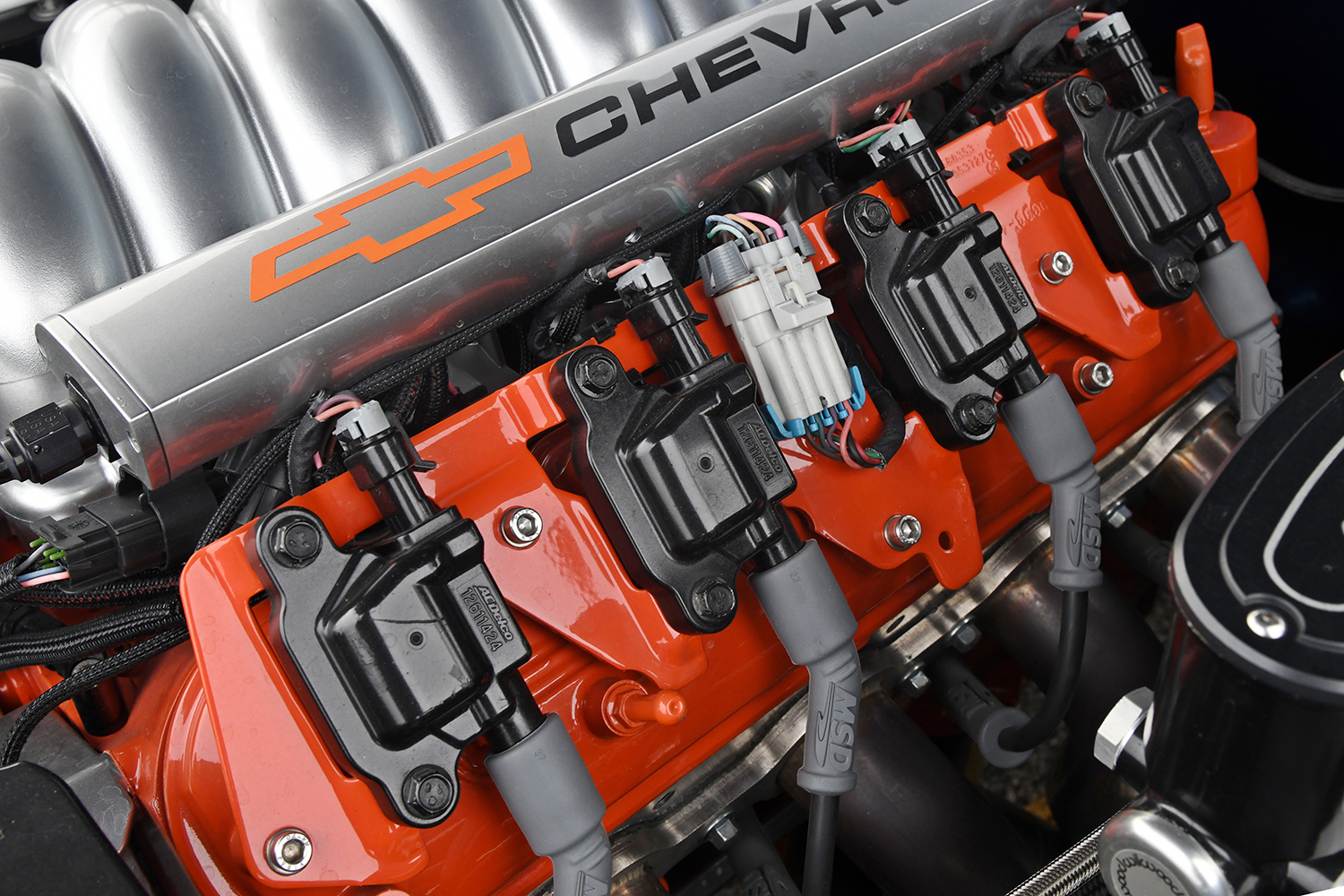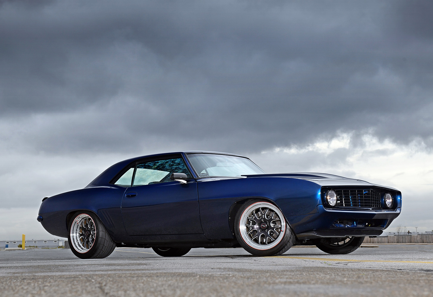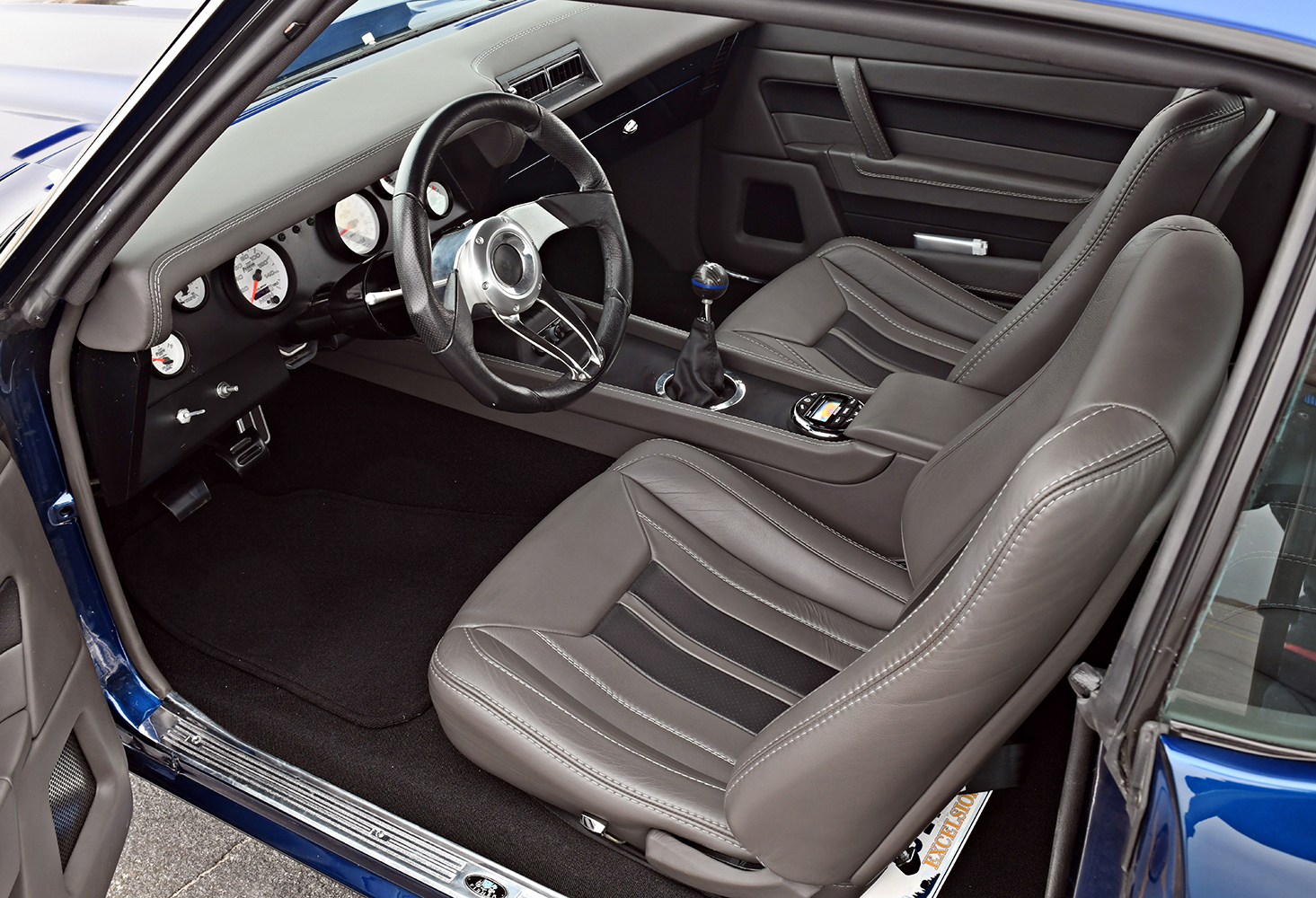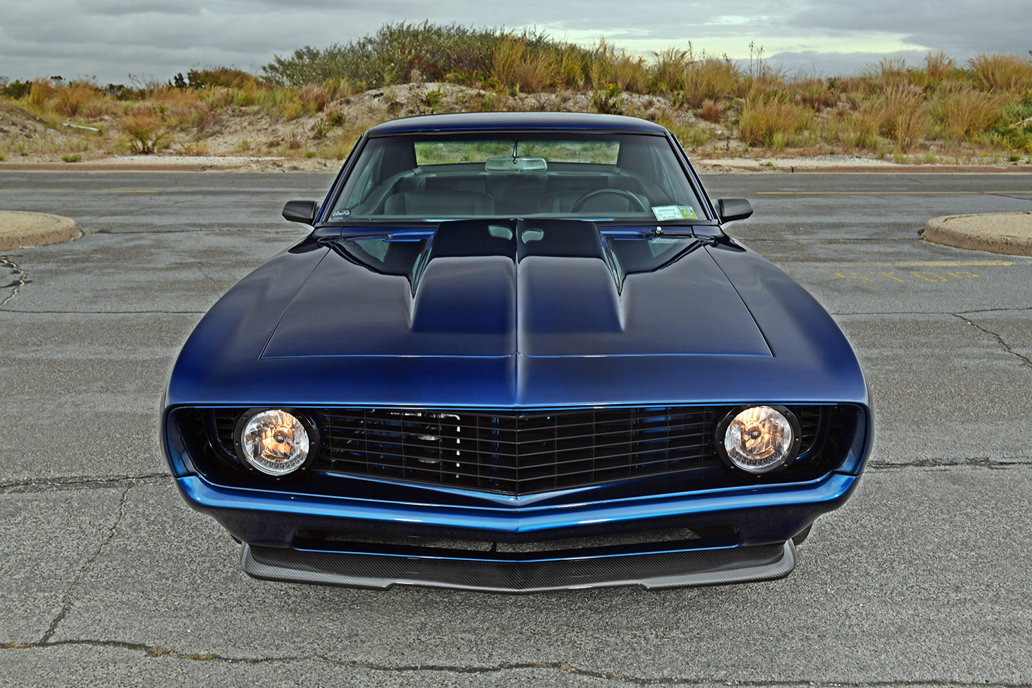 The firewall was smoothed to create a fetching place for the future powerplant; mini-tubs were installed out back to accommodate the massive wheel-and-tire combo. Other custom add-ons include carbon-fiber fenderwells, a carbon-fiber front valance, and a rear spoiler to give the Camaro that all-important Pro Touring look. Once the car was laser straight, BonaFide sprayed on a layer of Axalta Midnight Blue to the Camaro’s flanks. Flight Line Aircraft Detailing in Teterboro, New Jersey, finished off by treating the body with P&S Ceramic Coating materials.