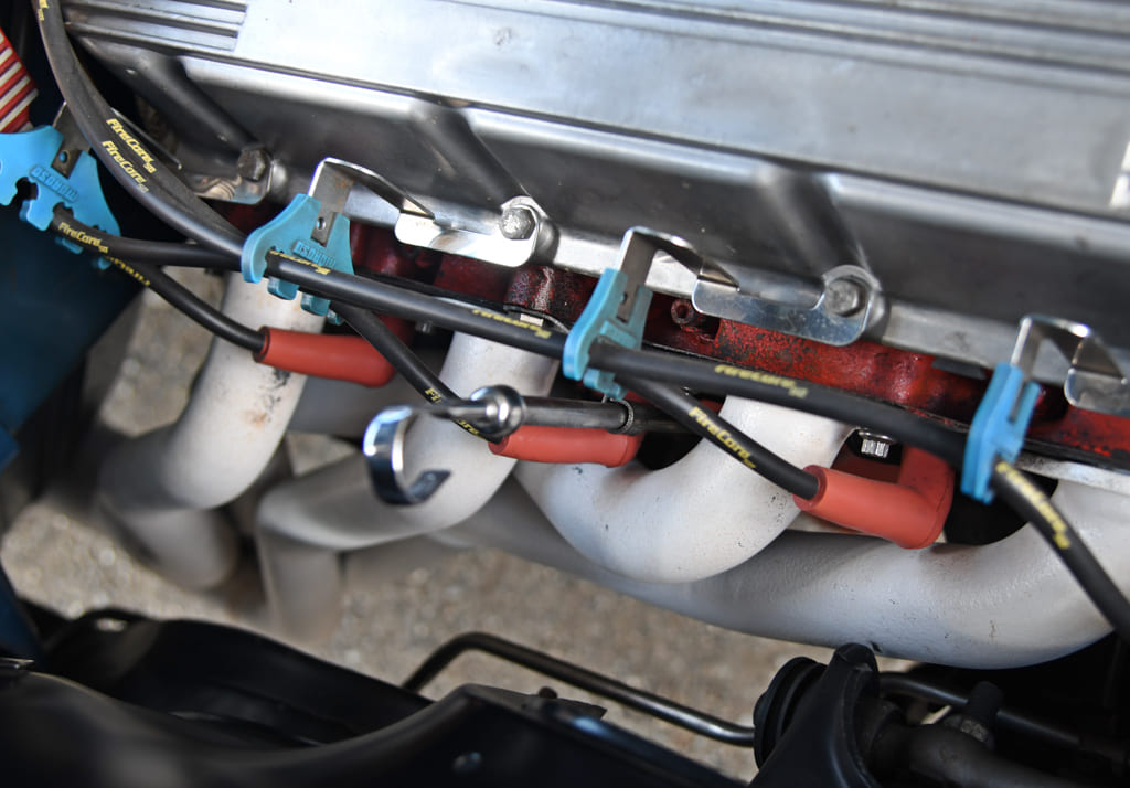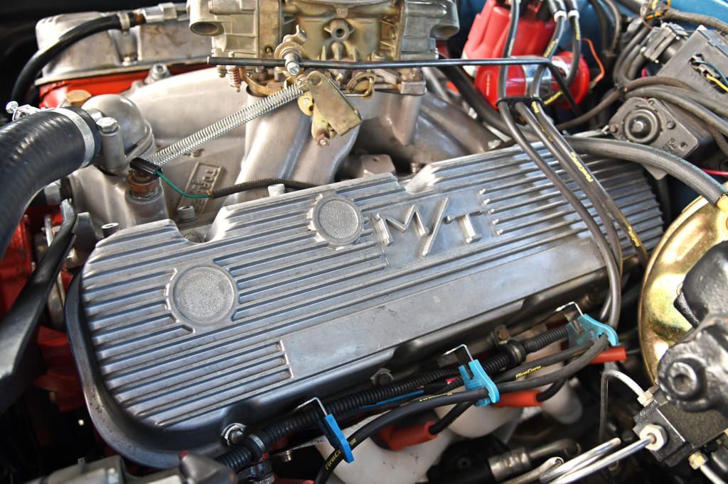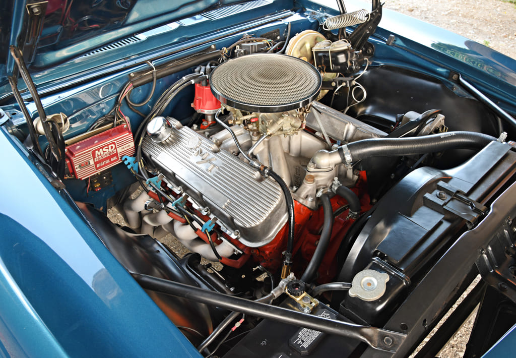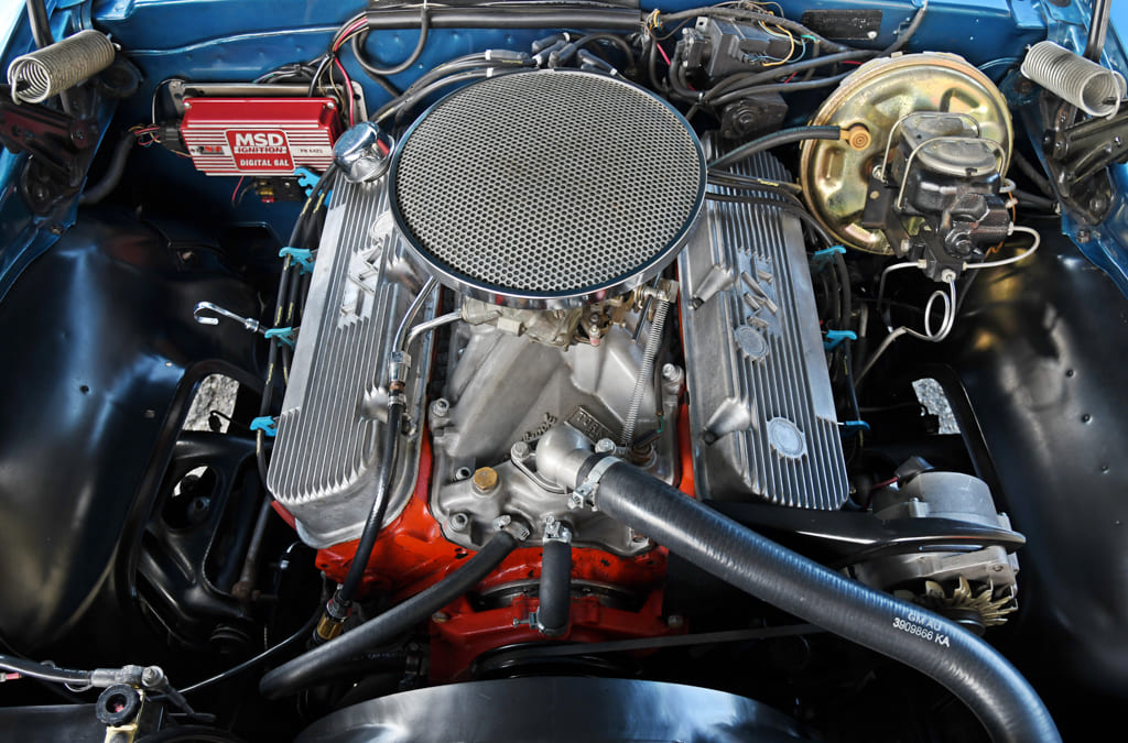 Spencer stuck with the stock heads and bottom end as the engine had only 800 break-in miles on it. To add a personal touch, he fitted an Edelbrock Torker intake topped with a Holley 750-cfm double pumper. He then installed an MSD 6AL box, the correct power steering pump, a big-block radiator with clutch fan, and correct deep-groove pulleys and belts. A vintage Fly Eye air cleaner gives the engine bay a custom ’70s touch. At 12:1 compression, this beast punches out over 500 hp at the crank.