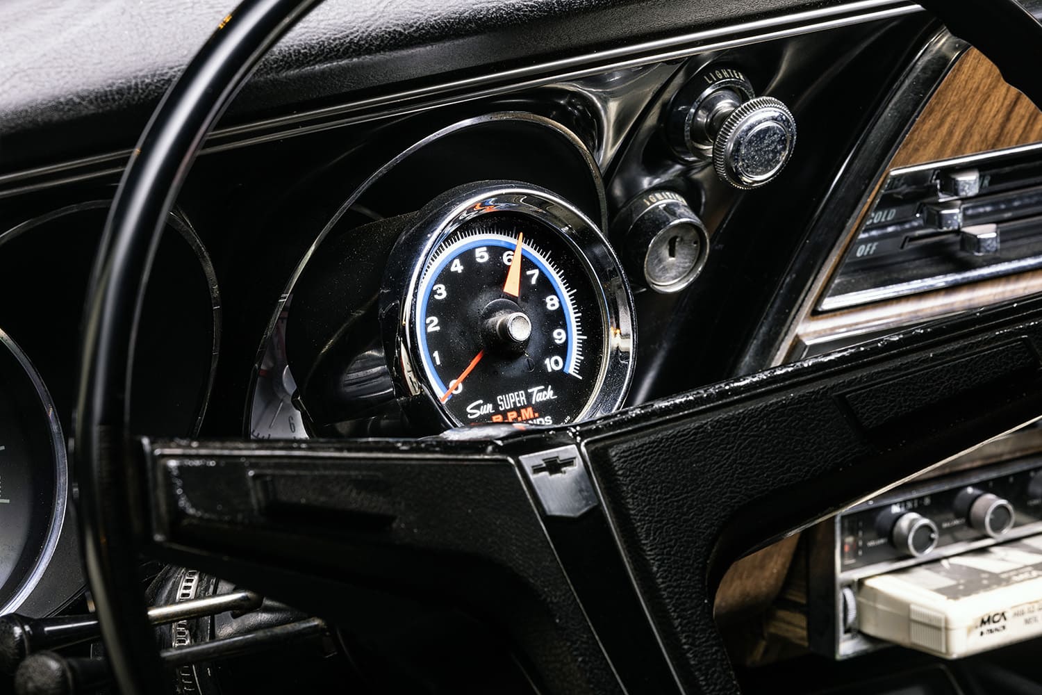 Everything on the car was highly original and the option was to return it to its stock configuration—John had other plans. His desire was to go down the Day Two path with some mild mods that could be undone at any point. On the list was the installation of a set of N.O.S. vintage Moroso frame connectors and a pair of vintage Lakewood Square Traction Action competition J-bolt traction bars. Rolling stock is arguably the most visible aspect to pull off on a Day Two car and that usually is accomplished with some old-school Cragar S/S mags. John’s stash of parts runs deep, and as you might guess by now, he had a few sets to choose from. Up front he fitted a pair of 1970s vintage 15×4 Cragar S/S Direct Drill mags wrapped in Mickey Thompson Sportsman 26X7.50-15 rubber. At the rear he went with a set of 1980s-flavored Cragar S/S Uni-Lug wheels fitted with M&H Racemaster P275/60B15 skins. Other elements like a Moroso rear differential cover and a set of vintage NMW tow tabs round out the visuals. Out back, the 3.73:1 gearing also gave way to a set of 5.13:1 cogs.