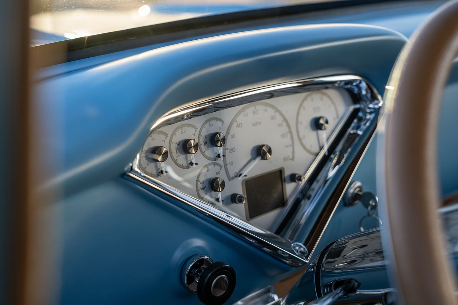 Comfort amenities added by Tre5 include Dakota Digital HDX gauge cluster, Ididit tilt column with a Billet Specialties Fury steering wheel, and a Morel/JL Audio system.