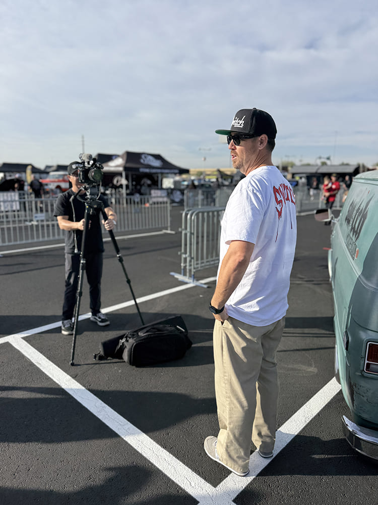 This year, we teamed up with Ryan Foss Productions to film the first full-length documentary on Dino’s Git-Down, so we spent the majority of our time capturing the event on video. Ryan traveled out to Phoenix prior to the show to sit down with Dino, his better half, Teri, and our good friend Ronnie from C10 Talk to get some good on-camera interviews discussing the Git-Down’s 15-year history and its origins. Once on site for the show weekend, we also had a chance to interview the show’s cofounder, Sam Castronova, along with C10 club president John Oro, and all of our gracious sponsors: Auto Metal Direct (title sponsor), Switch Suspension, JEGS Performance, K5 Squared, Gearstar Transmissions, and CPP. Stay tuned for what’s shaping up to be a must-see film!