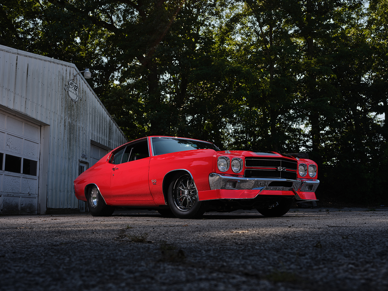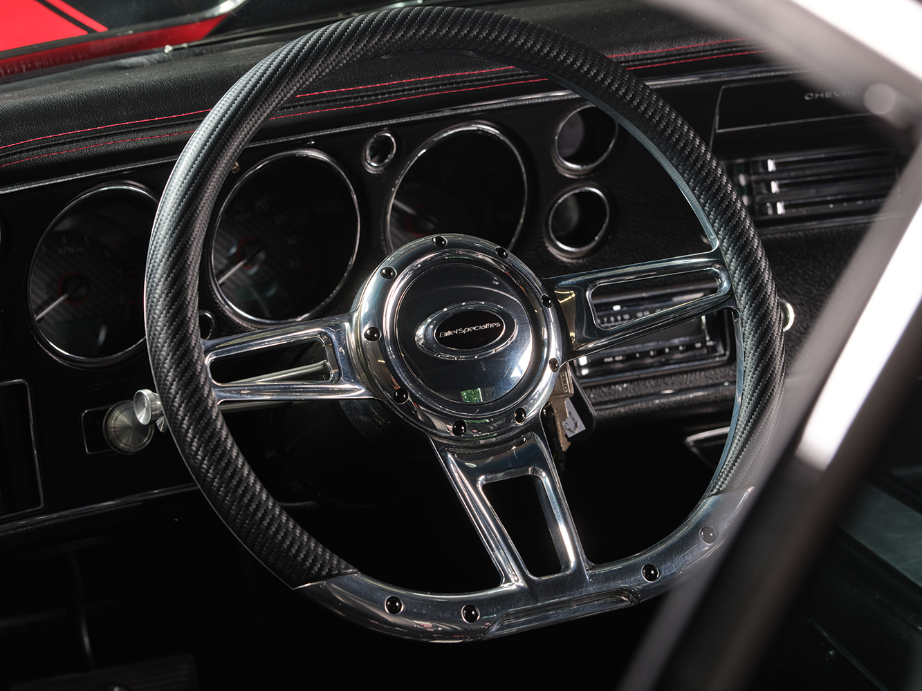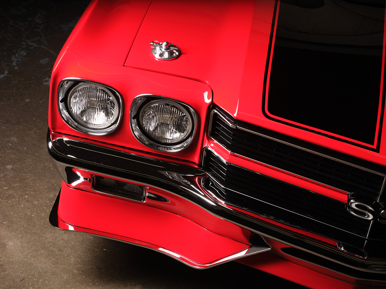 If it’s true that red muscle cars carry a rebellious, edgy persona in classic car culture, then John Woods’s 1970 Chevelle is guilty as charged. Cloaked in brilliant Glasurit Torch Red, a U.S. 12 Speed custom mix, the car stands out as an absolute troublemaker. Custom touches include nipped and tucked factory bumpers plated by Chrome Race Cars for a brilliant shine. The U.S. 12 crew also extended the rear valance to showcase the custom exhaust notches.