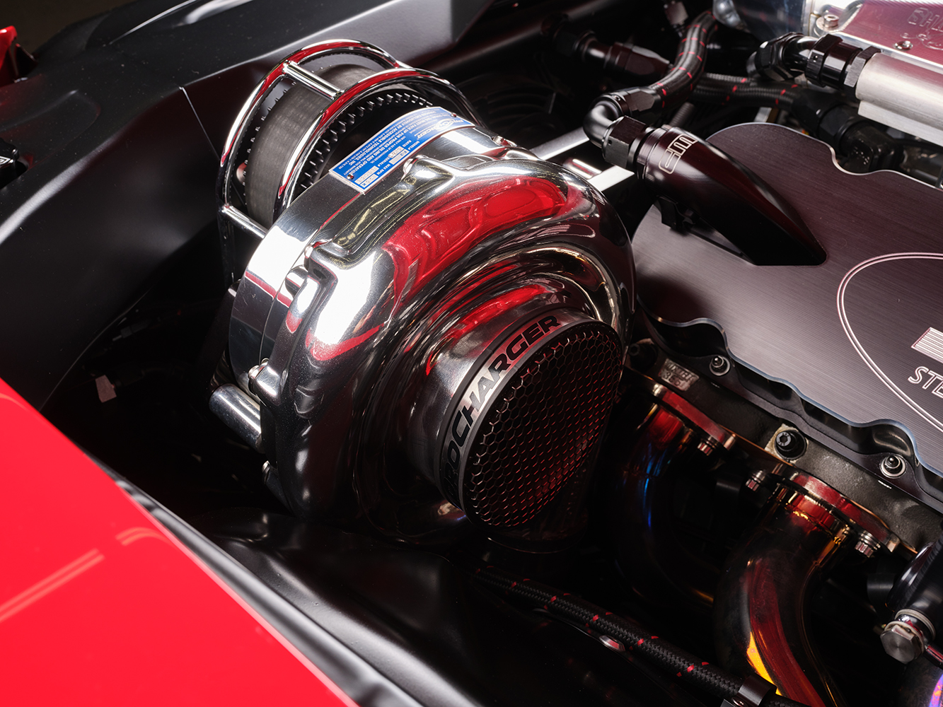 “As I continued to ponder my engine options, I wanted something completely badass and, of course, with a power adder,” John explains. “I also wanted a more modern wheel and tire combination, and to lower the car more than the 2 inches it already was.” John called Steve Morris and ordered one of his 540 Stage II engines complete with a Procharger blower.