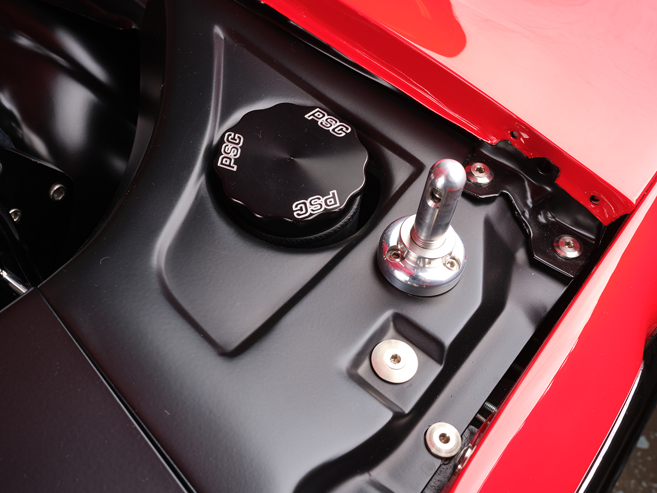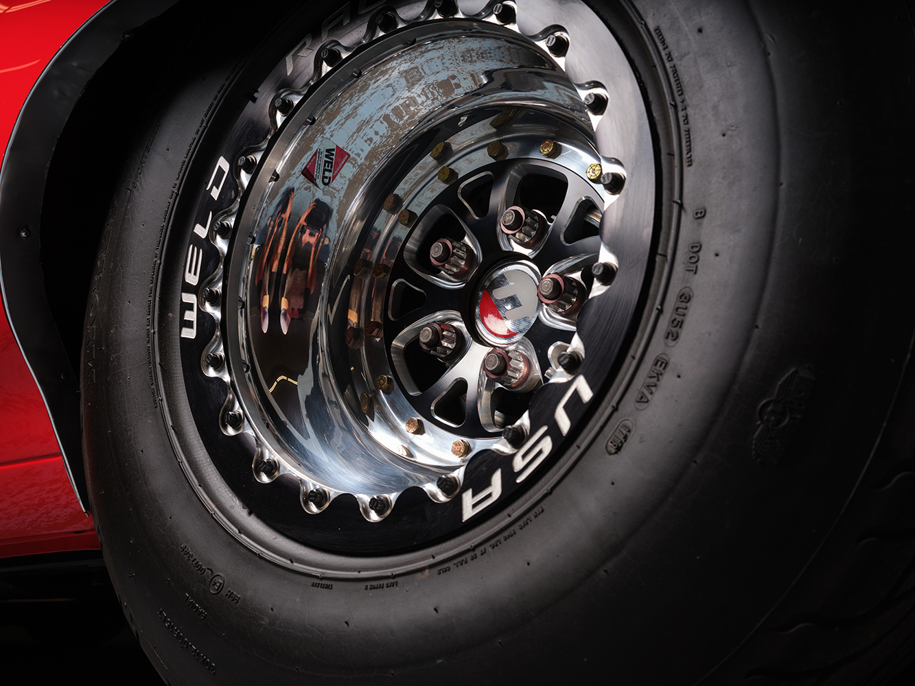 Ancillaries: Taylor wires, Eddie Motorsports hood hinges, PRC Performance aluminum radiator, Meziere billet water pump, Jones Racing alternator, Holley coil-on-plug ignition, Rick’s Tanks 27-gallon stainless tank, Aeromotive 5.0 GPH brushless fuel pump