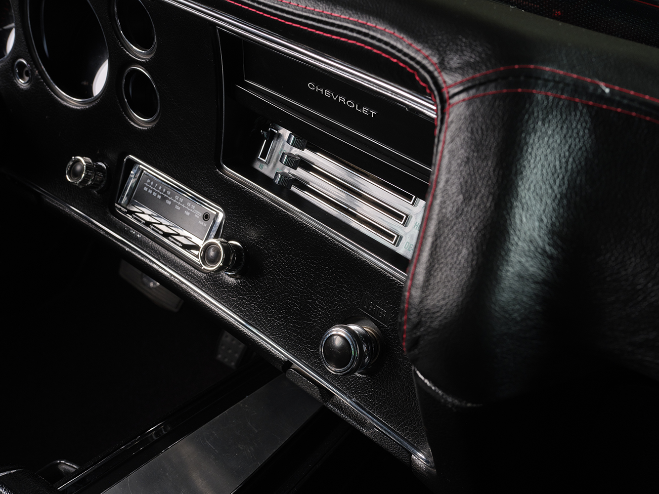 Sound System: Retro Auto head unit, Polk Audio amplifiers, Kicker KSC350 3 ½-inch front speakers, Infinity Kappa 6×9 rear speakers, Rockford Fosgate P300-8P 8-inch sub