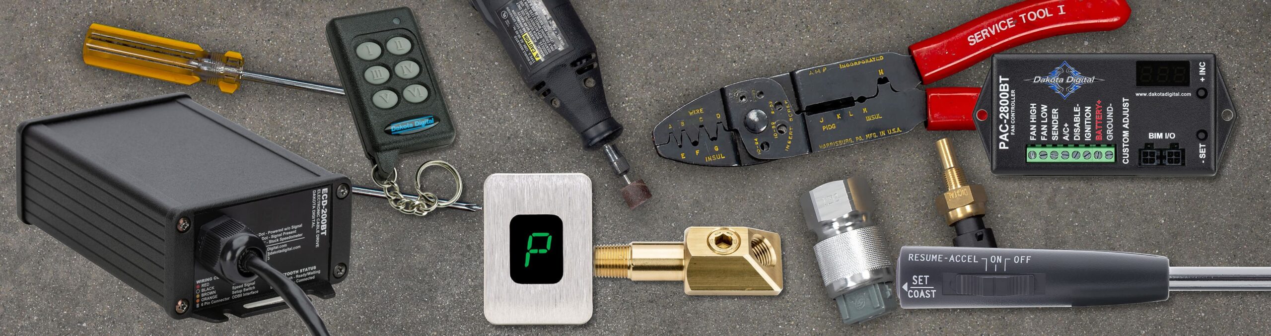 Dakota Digital (PN PAC-1300) offers automatic headlight control, dome light control, and retained accessory power. This controller activates the vehicle’s headlights in low-light conditions and turns them off as the lighting conditions improve to a safe level. It can keep the headlights on for a user-selected period after the vehicle is exited. Additionally, it features a selectable delay on the dome light after closing a door or turning off the ignition, along with fade-in and fade-out operation for the dome light. The PAC-1300 also keeps the vehicle’s accessories active until a door is opened after the ignition has been turned off for up to 20 minutes (duration is adjustable). This function will shut down the vehicle’s lights and accessories if a low-voltage condition is detected, helping to preserve battery charge for starting the engine.