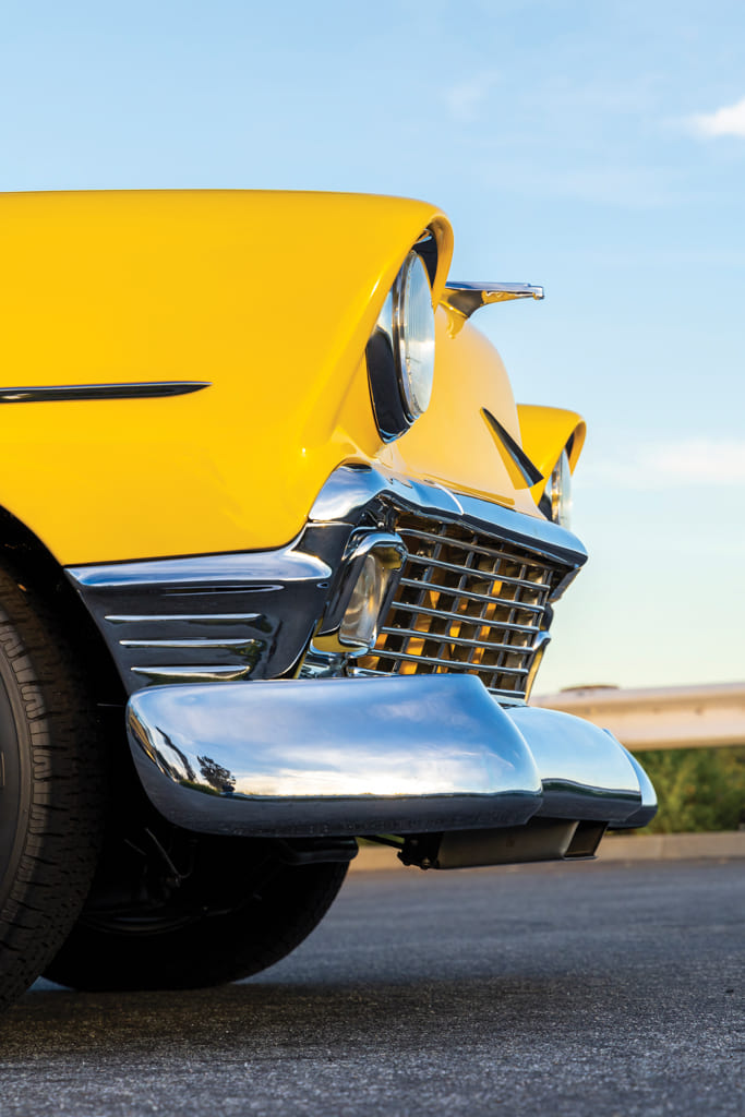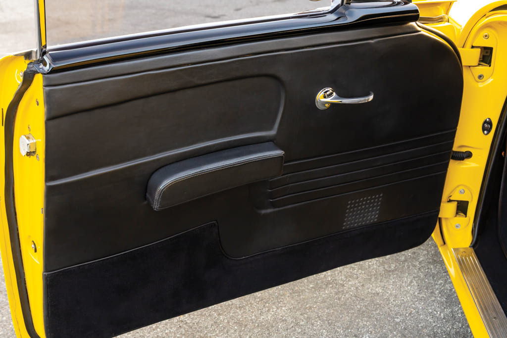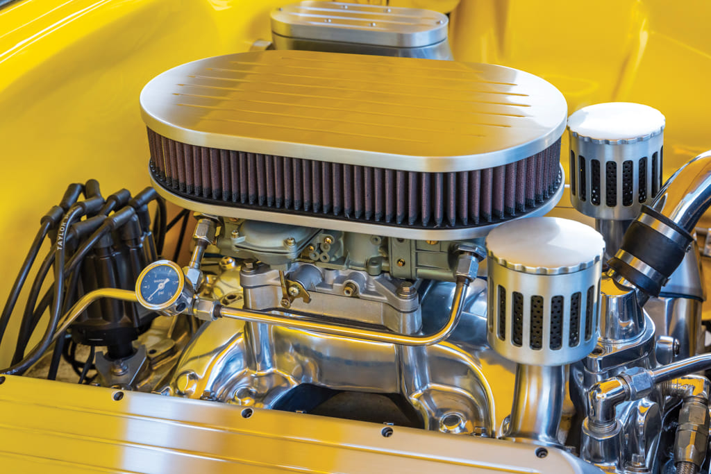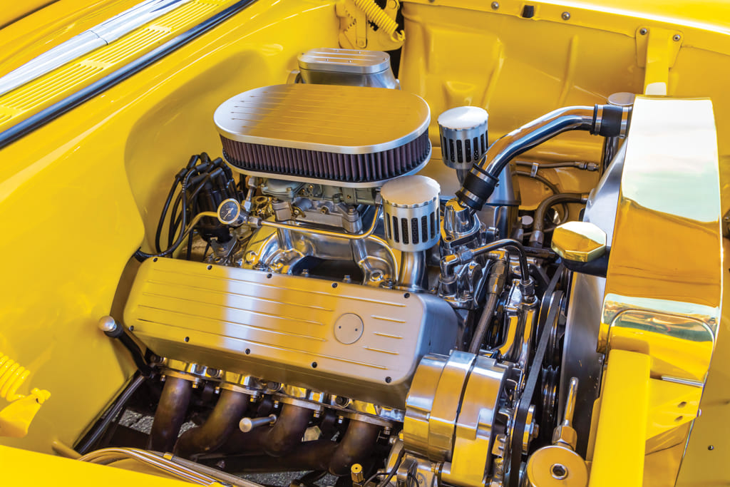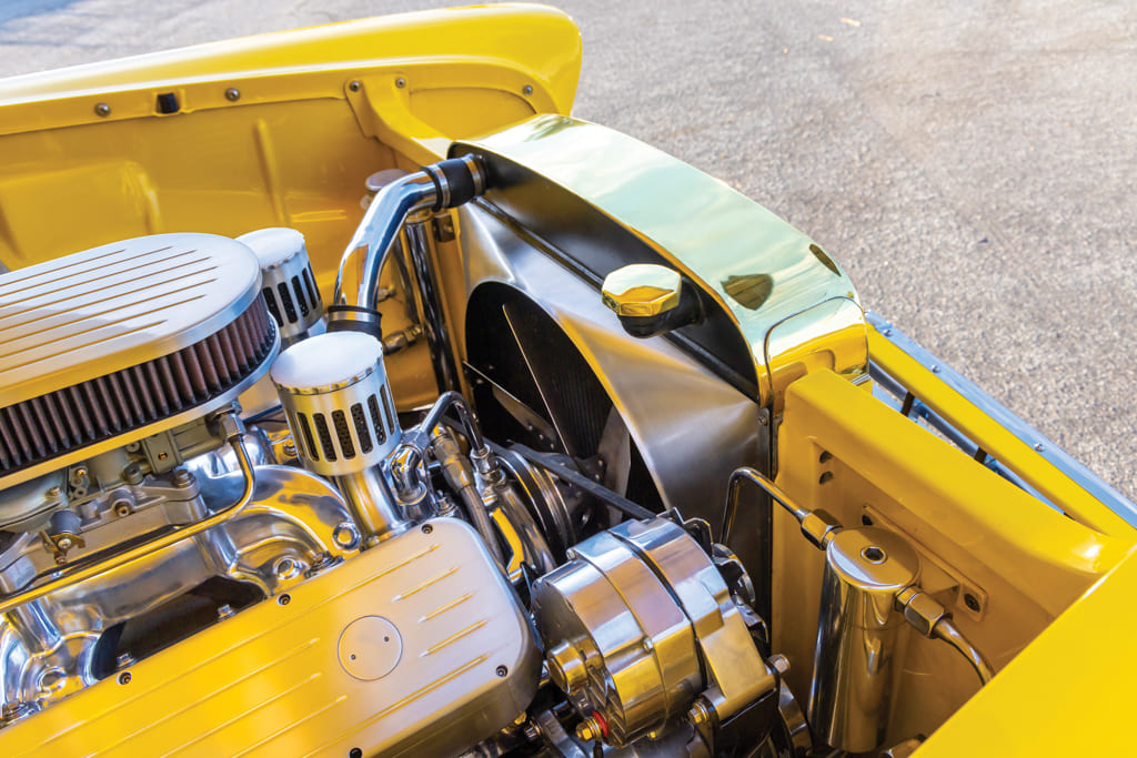 The engine is dressed in a plethora of Shonig one-off billet pieces, including the air cleaner, valve covers, breathers, and the master cylinder cover. “Shonig made these types of pieces before anyone else and way before the aftermarket companies began mass producing them,” Tom reveals. “These parts were showing up on early street rods, but this was among the first Tri-Five to have any billet aluminum accents.”