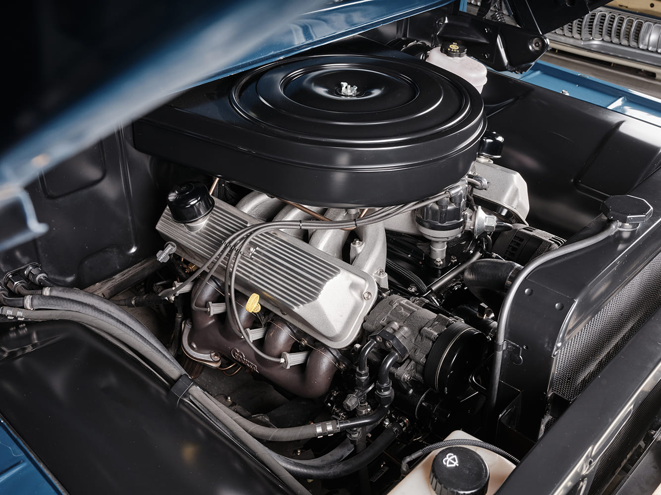 11 1960 Ford F 250 custom engine bay aluminum valve covers Sanden AC billet brackets serpentine system