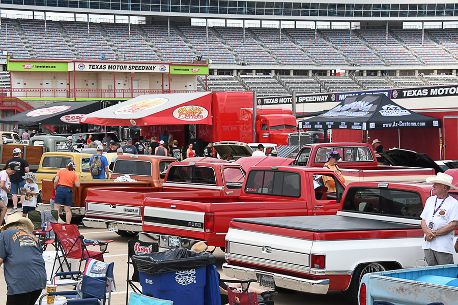 Springtime always brings out fresh builds, and there were plenty to be found throughout the TMS infield. LMC Truck hosted a Trick Truck Corral, and this being Texas there were plenty of cool pickups ranging from the 1950s and older up through sleek OBS builds. The Builderβs Choice area, presented by Hills Hot Rods and KCβs Paint Shop, was packed with high-end hot rods, muscle machines, and classics.