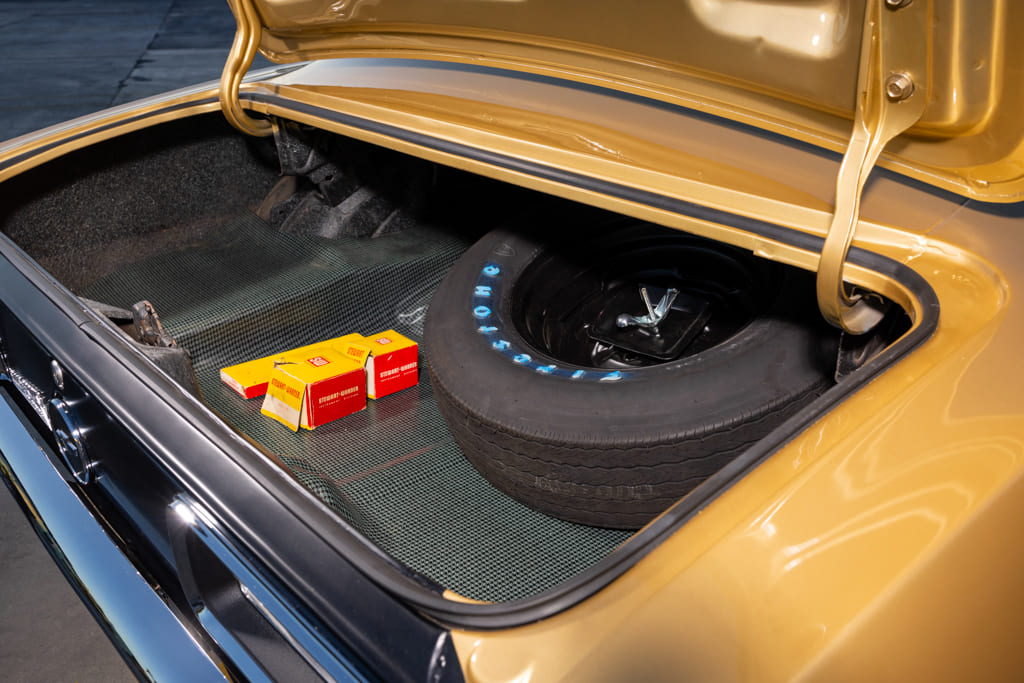Instrumentation: Stock with N.O.S. Stewart-Warner 977-J pedestal tach, underdash oil pressure, amp, and temp gauges