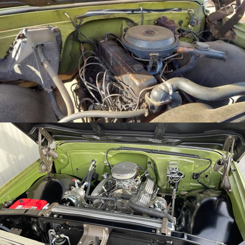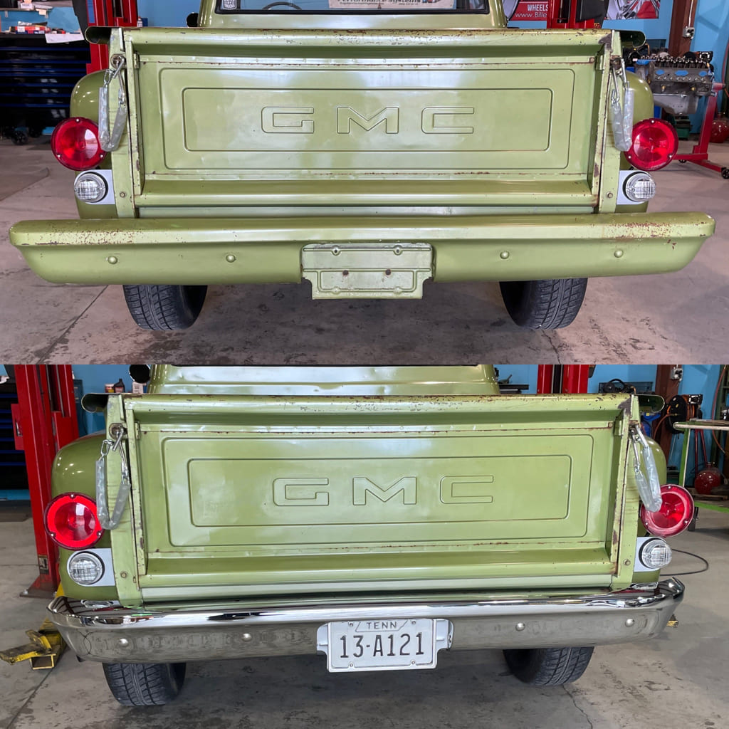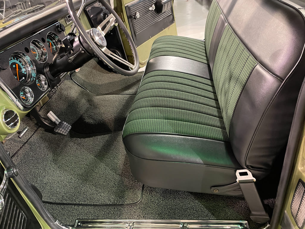Exterior: When Jack got the truck it had a previously installed wide bed bumper out back that had been painted green when the truck was painted. We installed an AMD rear bumper and made the needed mods to the bed and brackets to tuck it nice and tight right up under the tailgate. The result is a cleaner look that most will probably need a minute to figure out the difference.