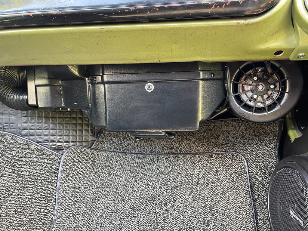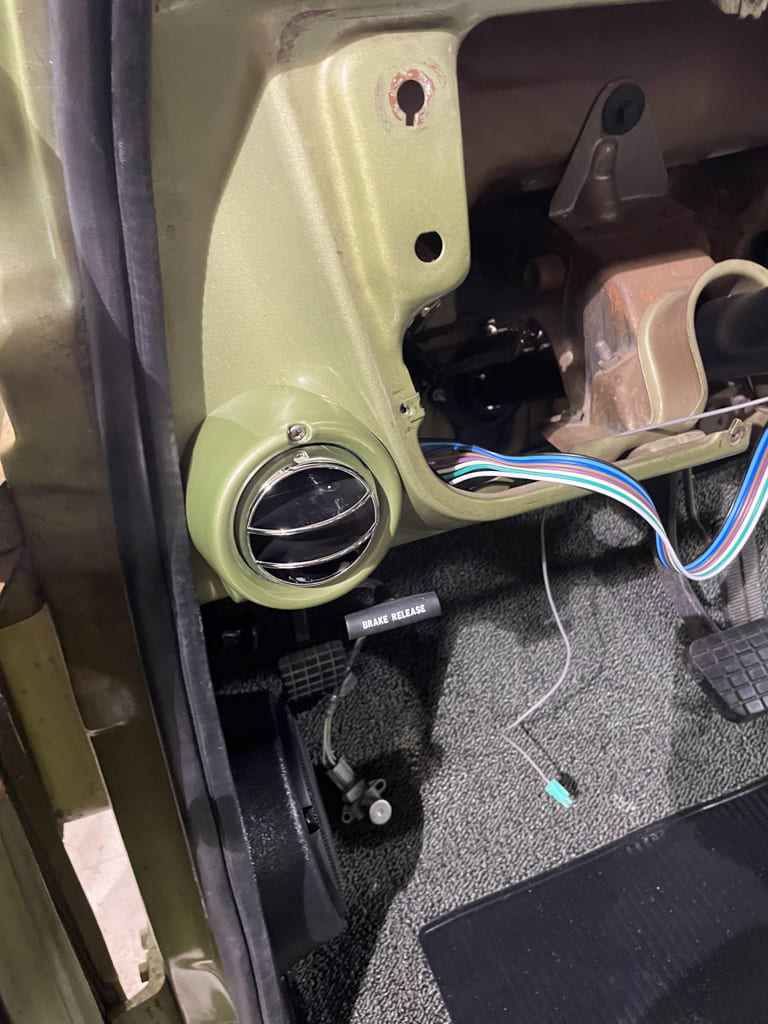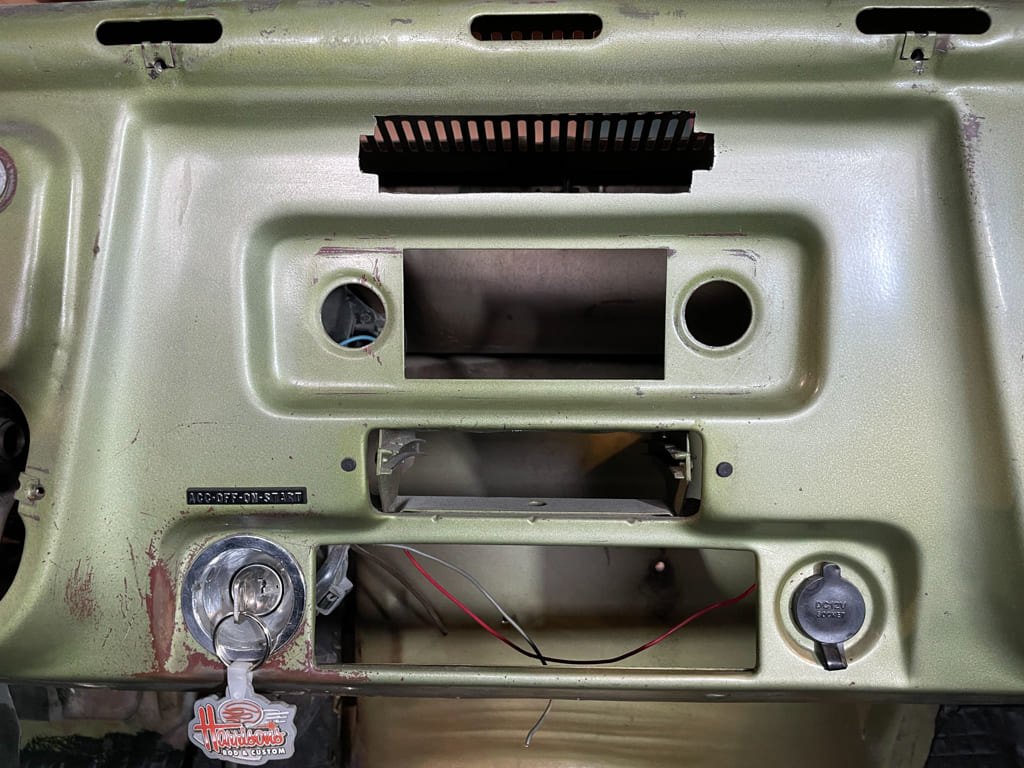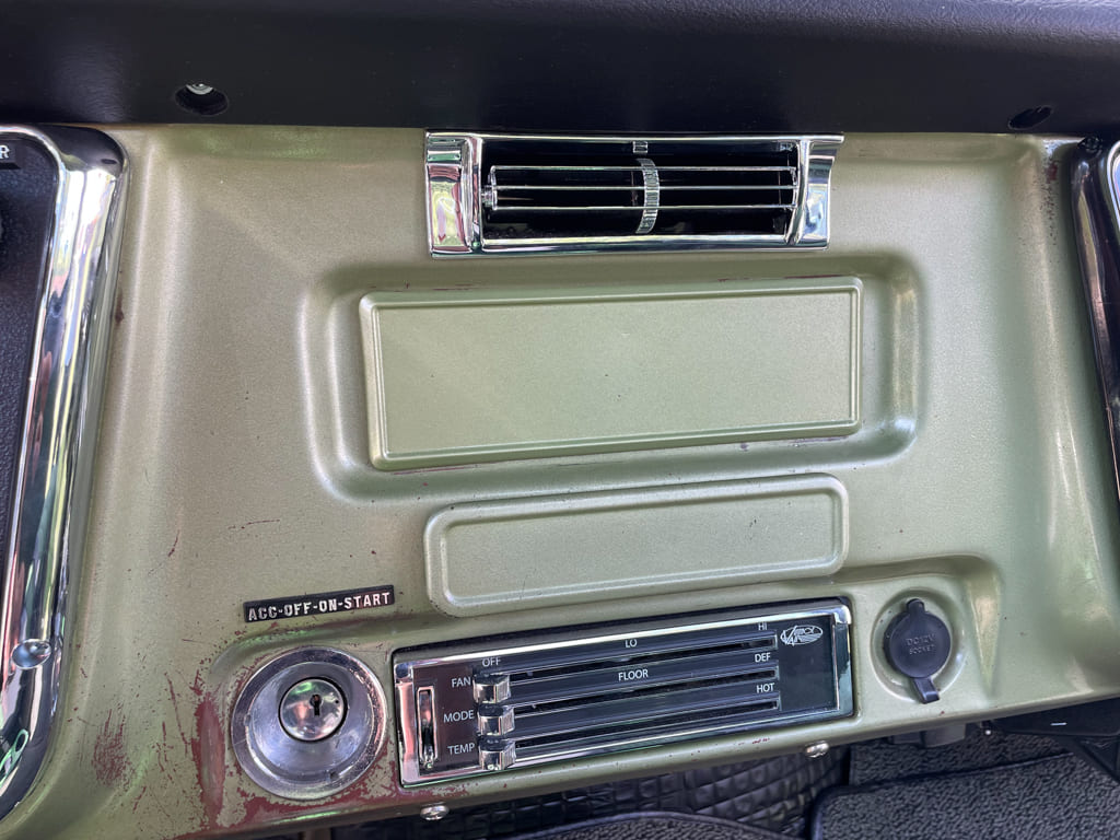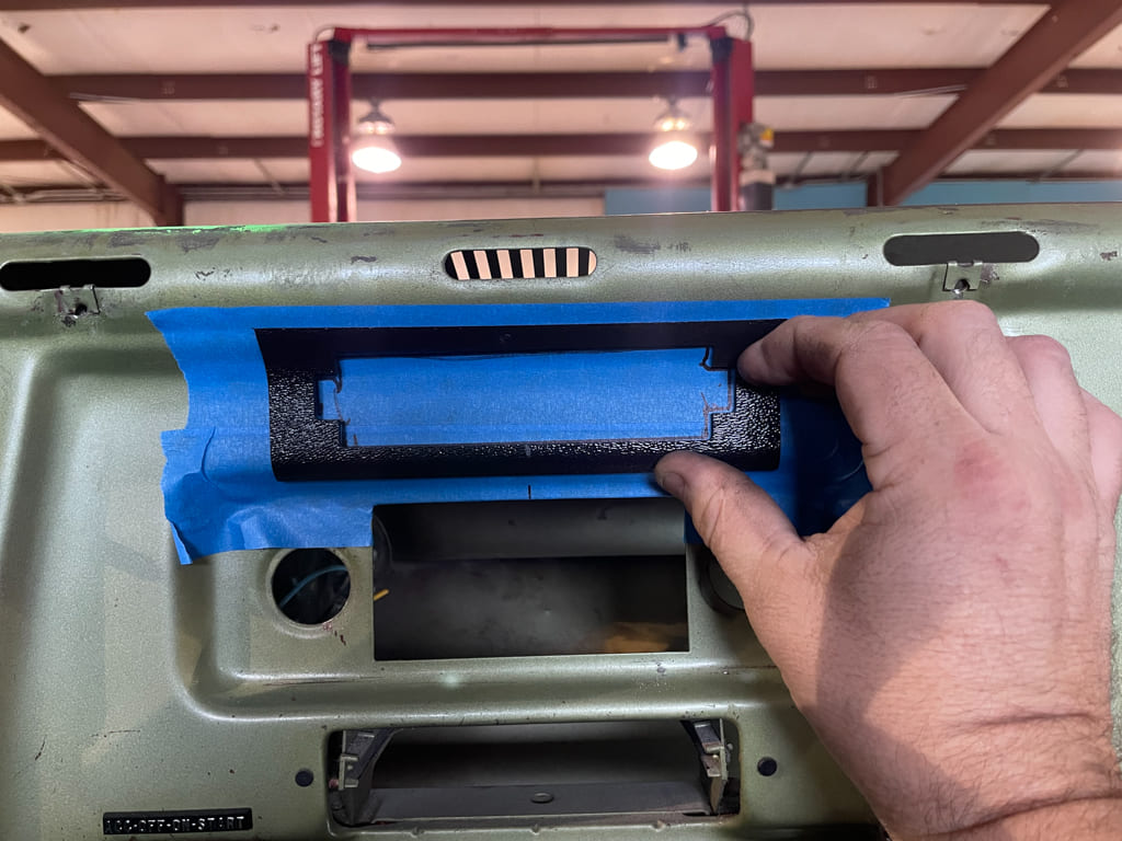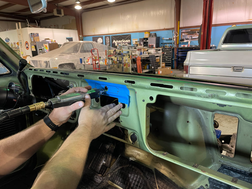 A/C: Since we were going this far we didn’t want to just put generic A/C vents in so we installed factory A/C vents using some templates from Old Air Products. Take your time and install the templates right, make slow accurate cuts on the small side, then open up with a Dynafile and the results will be what we have here.