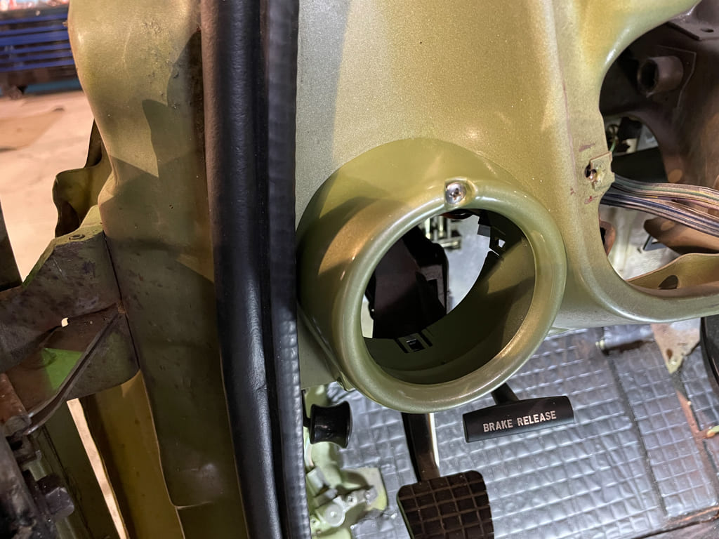 Gauges: I’ve been a dealer for Classic Instruments for several years and for this one they were a natural choice. Combines with a new gauge bezel from Auto Metal Direct (AMD), the cluster couldn’t look better. The added benefits of full gauges and electronics are even better. The speedometer calibrated right the first time and is perfectly accurate. I mounted the buttons in the column plate below the column after slicking it up and painting it.