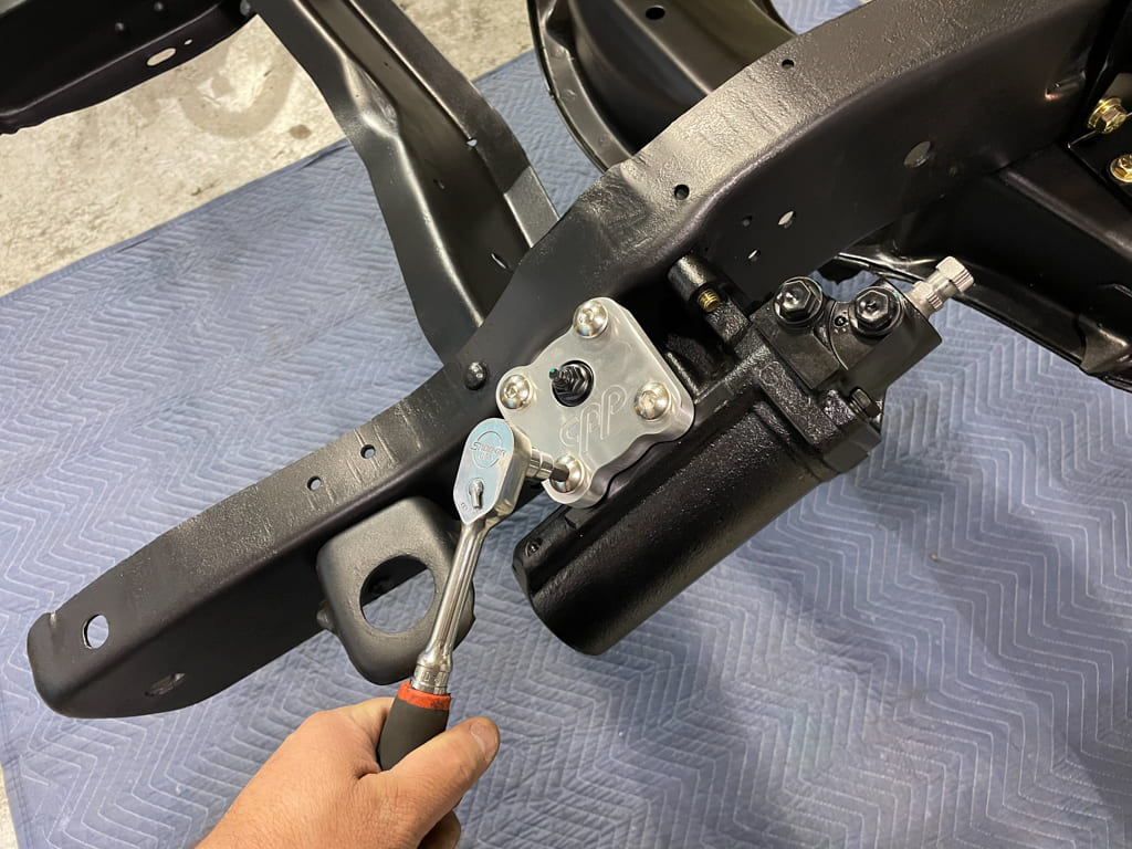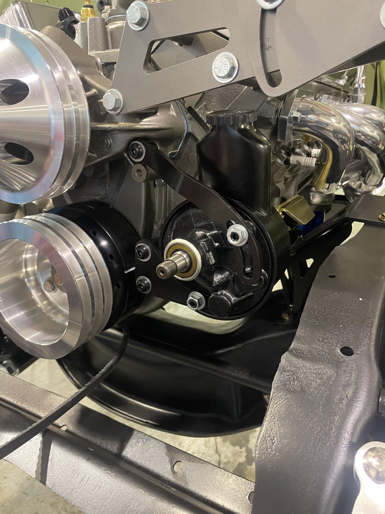 Having used CPP 500 Series steering boxes on past projects, we knew that was what we wanted for the ’71. Installation was simple and fitment/finish great. The added billet top plate to finish it off makes it even cooler. The supplied hoses fit good and the pump/brackets aligned perfectly.